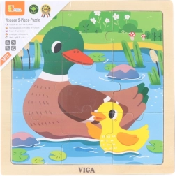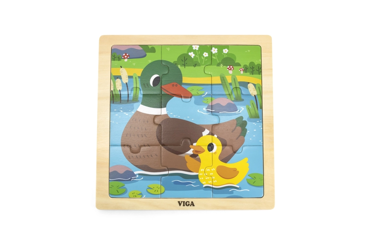 Mielos medinės dėlionės iš VIGA su ančiukų tvenkinyje motyvu pradžiugins mažuosius statytojus. 9 dalys tvirtame rėmelyje lavina smulkiąją motoriką, loginį mąstymą ir susikaupimą. Kokybiška medinė konstrukcija su netoksiškais dažais ir lygiais kraštais yra saugi vaikams namuose ir darželyje.