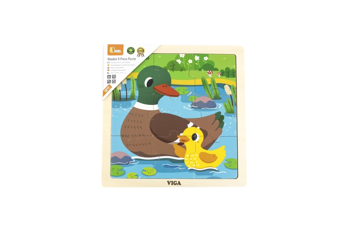 Vaikiška medinė dėlionė su anties ir ančiuko motyvu suteikia linksmą mokymąsi per žaidimą. Devynios tvirtos dalys dedamos į medinį rėmelį ir sudaro linksmą tvenkinio paveikslėlį. Ryškios spalvos, patvarios medžiagos ir apgalvota dalių forma palengvina dėliojimą ir pirmąsias sėkmes.