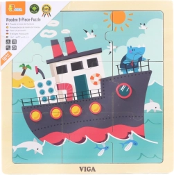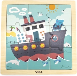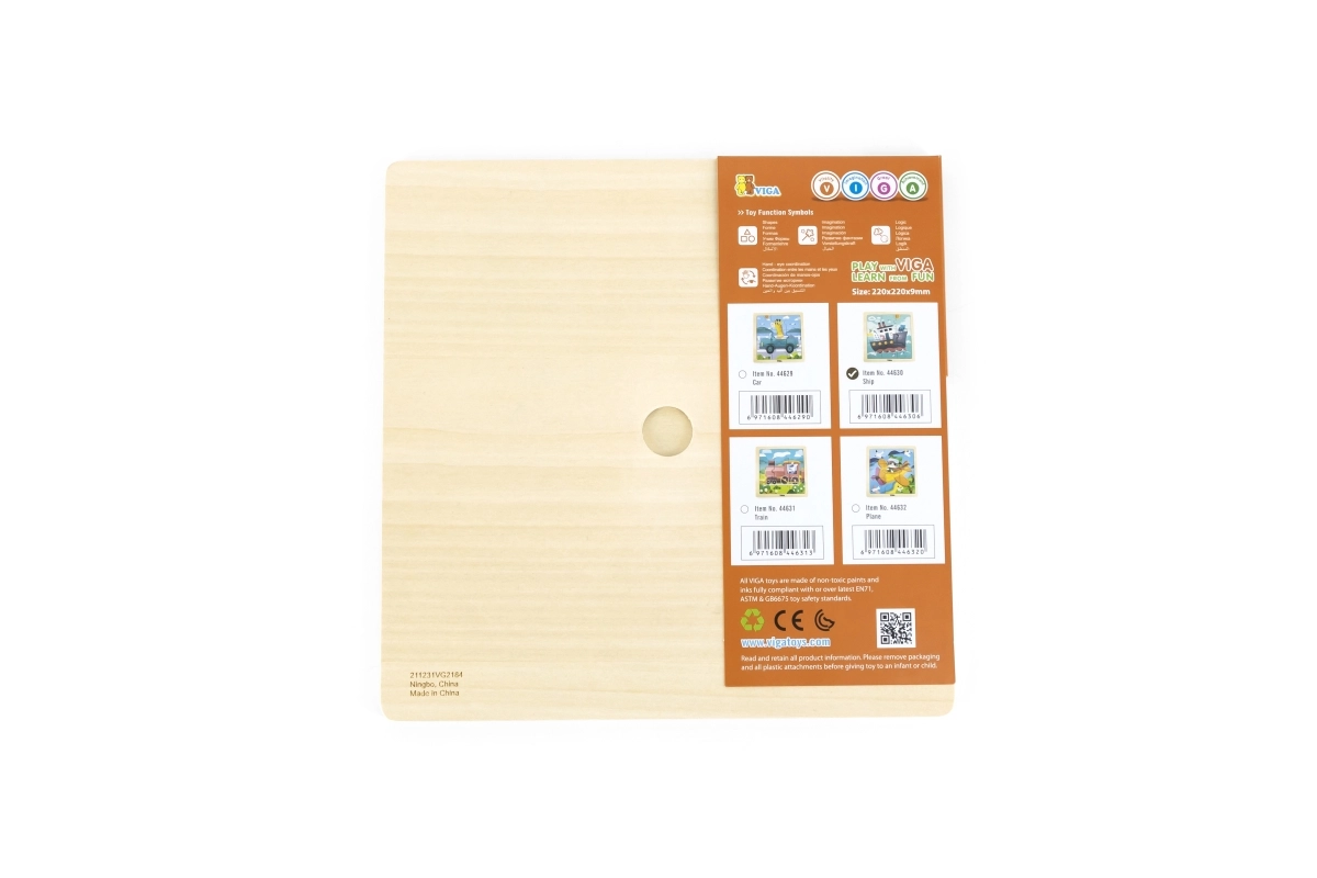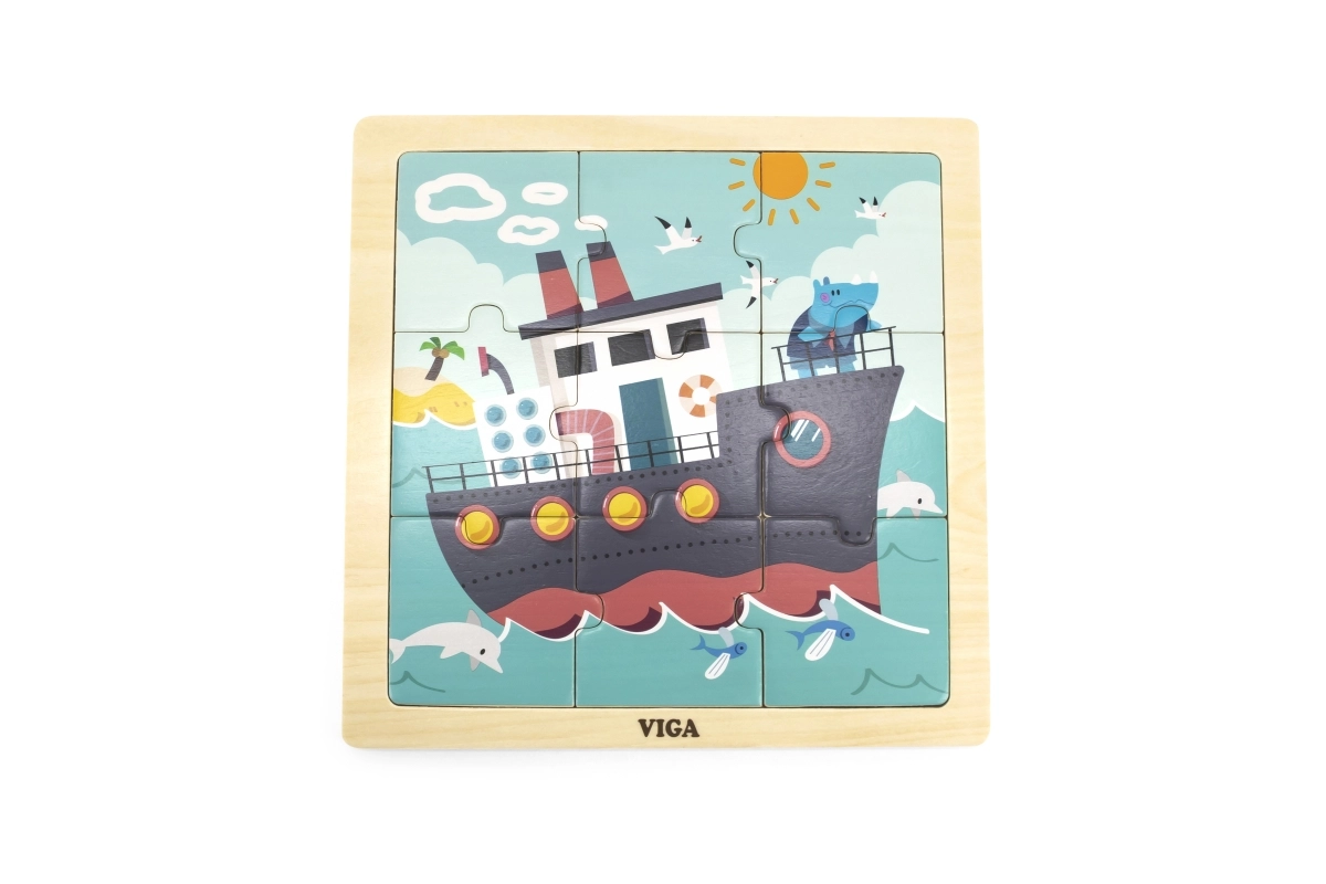 VIGA medinė dėlionė su laivo motyvu siūlo 9 lengvai paimamas detales ant tvirtos medinės lentos – idealiai tinka patiems mažiausiems. Dėl saugių netoksiškų dažų, lygintų kraštų ir patvarios medinės konstrukcijos tai puikus pasirinkimas namams ir darželiui. Vaikai patirs atradimo džiaugsmą ir lavins smulkiąją motoriką, loginį mąstymą bei pažintinius gebėjimus.