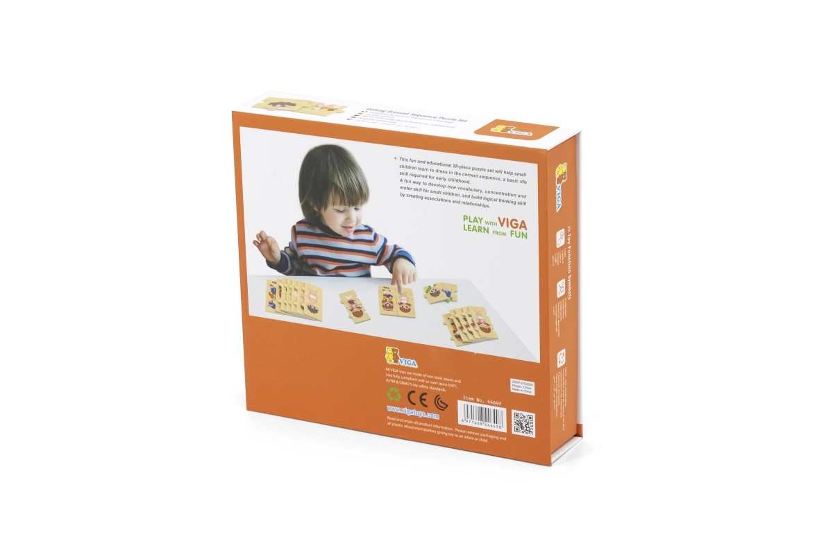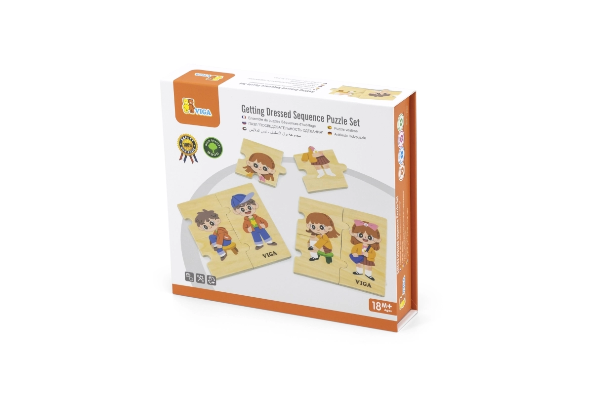 Atraskite smagų būdą išmokyti vaikus apsirengimo eiliškumo. Ši medinė dėlionių rinkinio setas iš VIGA susideda iš 28 dalių ir padeda lavinti loginį mąstymą, smulkiąją motoriką ir akių–rankų koordinaciją. Patvari medinė konstrukcija ir saugus apdirbimas idealiai tinka mažyliams nuo 18 mėnesių.