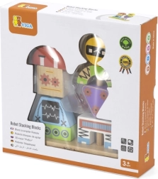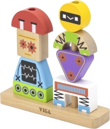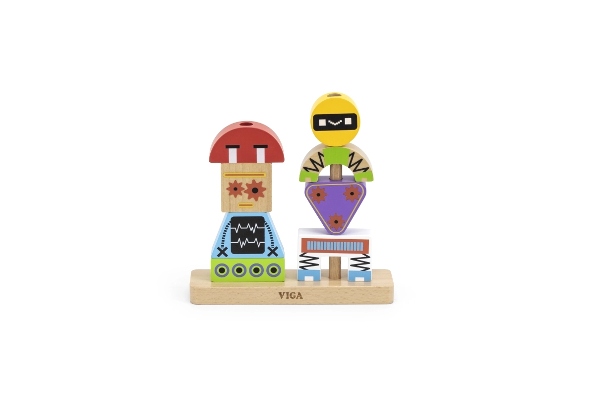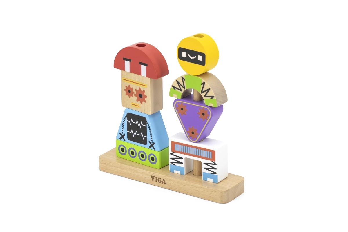Medinė dėliojama piramidė ROBOTAI su raštų kortelėmis, 8 dalys – VIGA