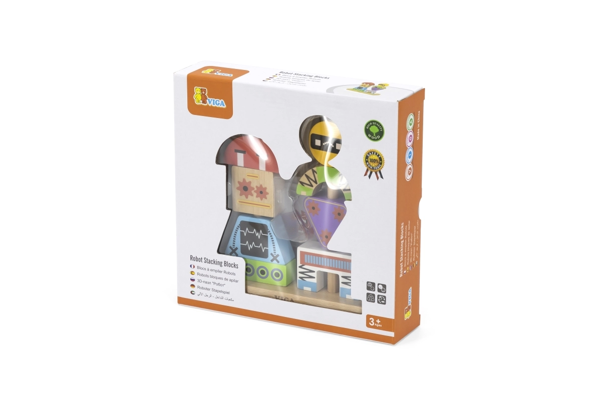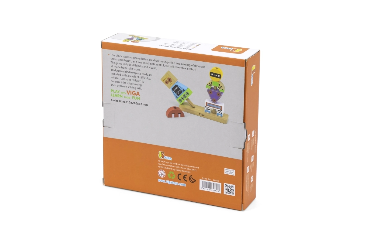 Spalvingas medinis VIGA dėliojimo žaidimas vaikams nuo 3 metų lavina kūrybiškumą, smulkiąją motoriką ir loginį mąstymą. Iš 8 tvirtų detalių vaikai kuria linksmus robotus pagal pavyzdžių korteles ir savo fantaziją. Saugus buko medžio atlikimas su netoksiškais dažais ir praktiška dovanų pakuotė.