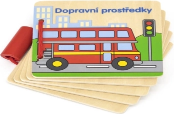 Ši kokybiška medinė knygelė – puiki priemonė pirmosioms pažintims su supančiu pasauliu. Spalvingas automobilių, traukinių, laivų ir kitų transporto priemonių iliustracijas papildo užrašai čekų kalba, todėl vaikai natūraliai lavina kalbinius įgūdžius ir pažinimą.