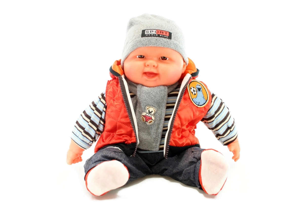 Mielas kūdikis – berniukas su minkštu kūneliu pradžiugins kiekvieną vaiką. Realistiško dydžio apie 55 × 30 × 13 cm, su oranžine liemene ir drabužėliais, kuriuos lengva nurengti. Idealu vaidmenų žaidimams ir empatijos ugdymui. Minkštas kūnas, lengvai nuvelkami drabužiai ir dydis kaip tikro kūdikio dar geresnei žaidimo patirčiai.