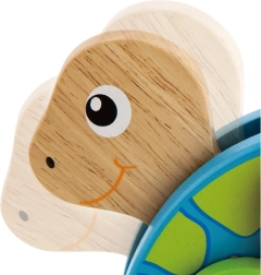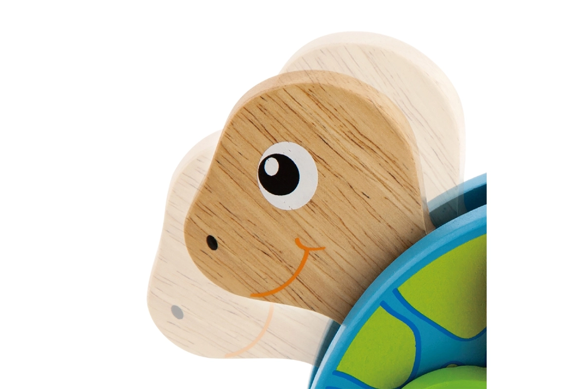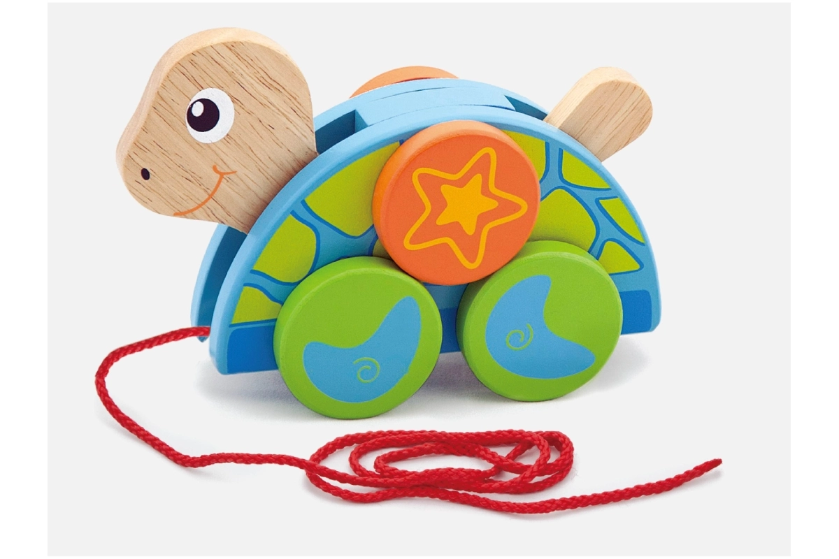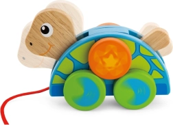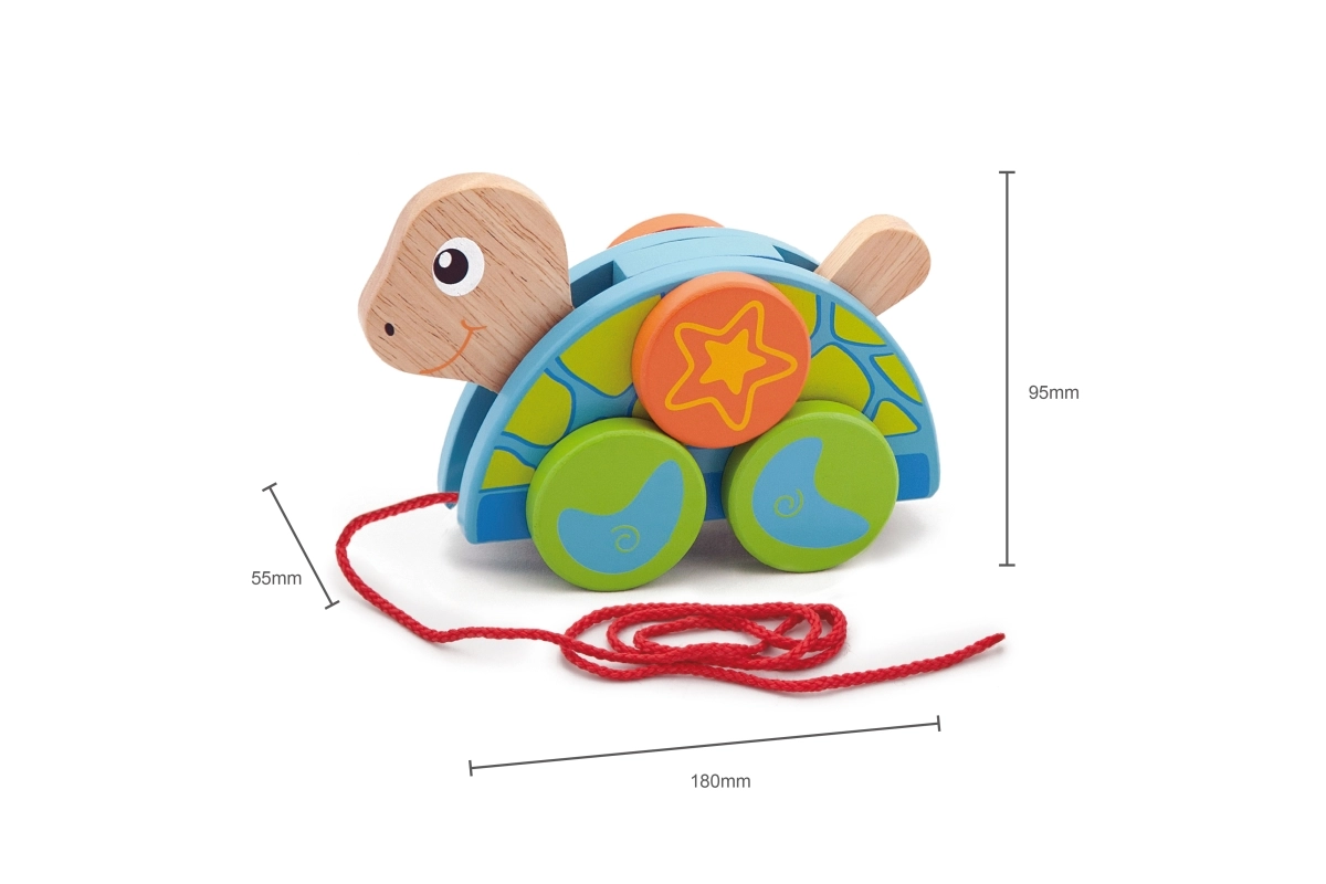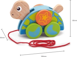 Ši spalvinga medinė traukiama vėžlė sukurta taip, kad motyvuotų vaikus vaikščioti, palaikytų judesių koordinaciją ir natūraliai lavintų tiek smulkiąją, tiek stambiąją motoriką. Tvirtas medinis korpusas ir maloniai suapvalinti kraštai užtikrina saugų žaidimą, o ryškios spalvos ir žaismingas dizainas skatina regimąjį suvokimą.