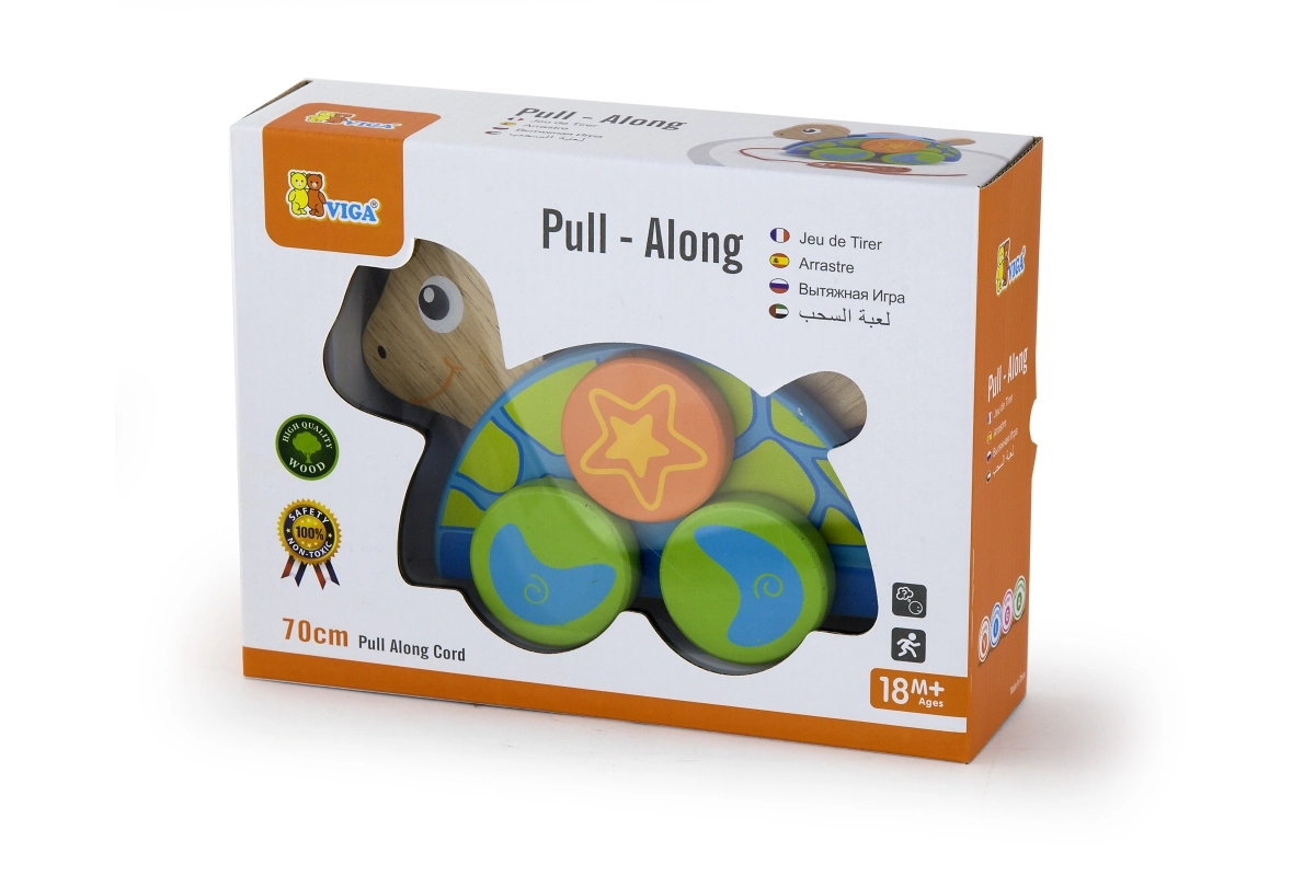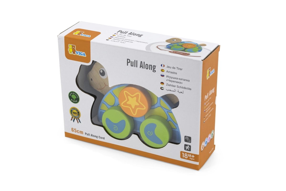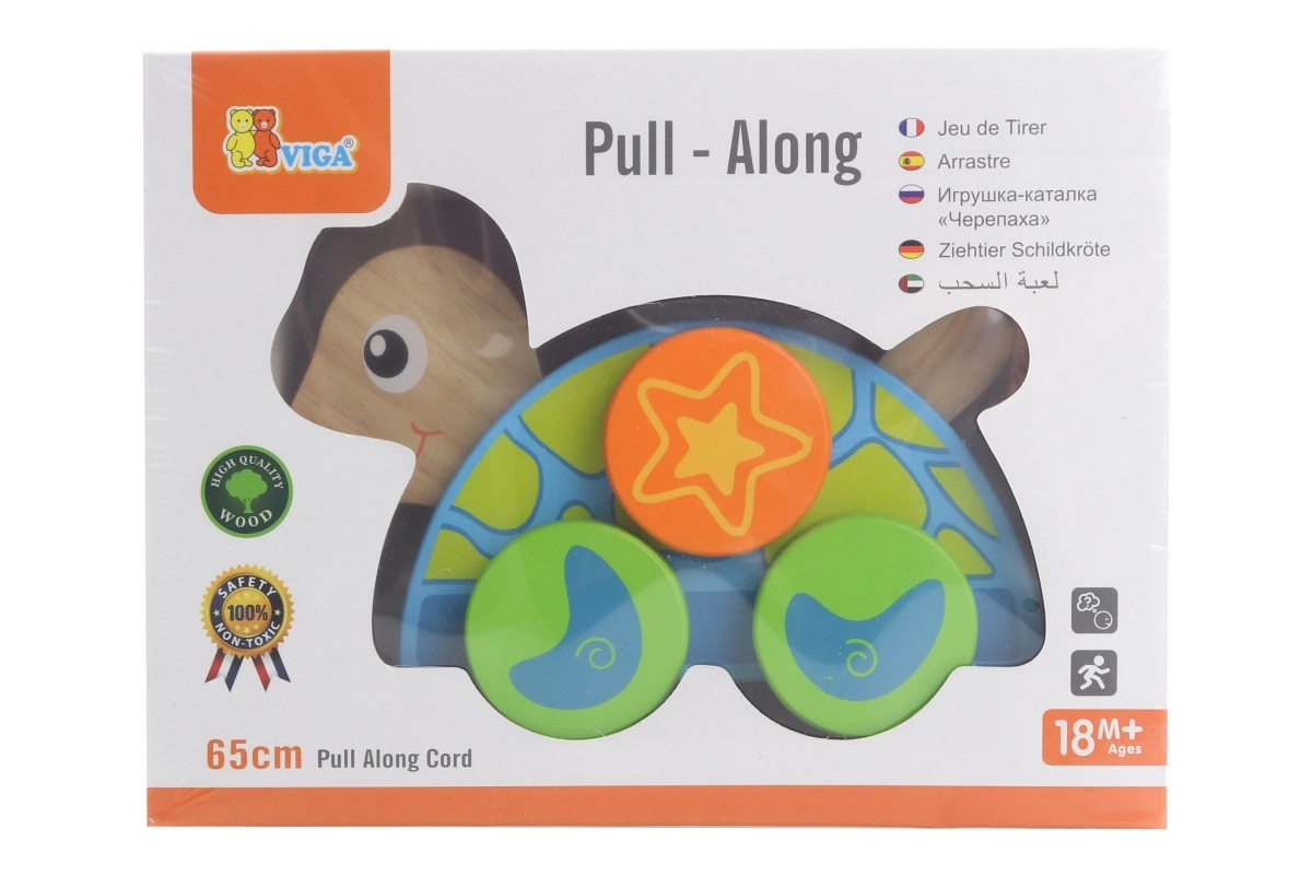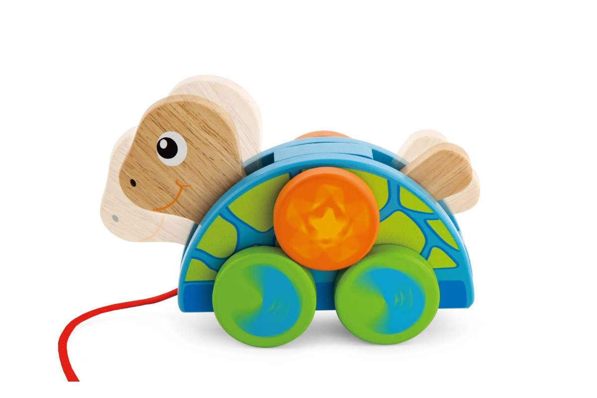 Ši spalvinga medinė traukiama vėžlė sukurta taip, kad motyvuotų vaikus vaikščioti, palaikytų judesių koordinaciją ir natūraliai lavintų tiek smulkiąją, tiek stambiąją motoriką. Tvirtas medinis korpusas ir maloniai suapvalinti kraštai užtikrina saugų žaidimą, o ryškios spalvos ir žaismingas dizainas skatina regimąjį suvokimą.
