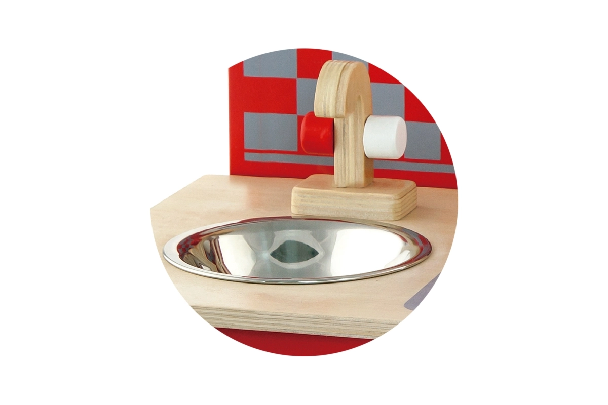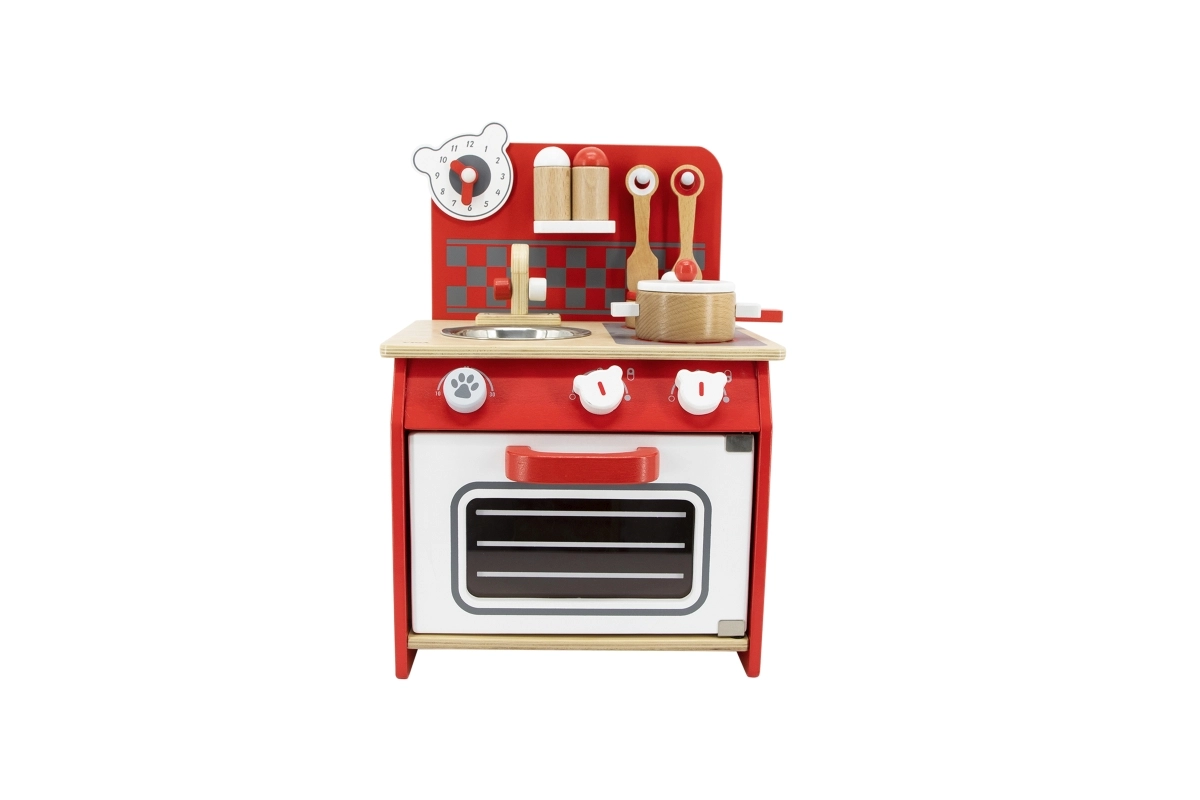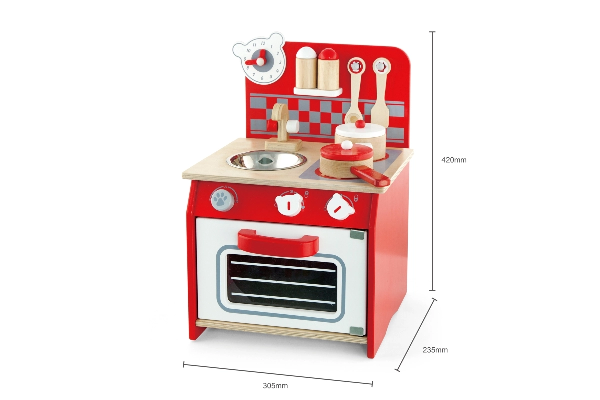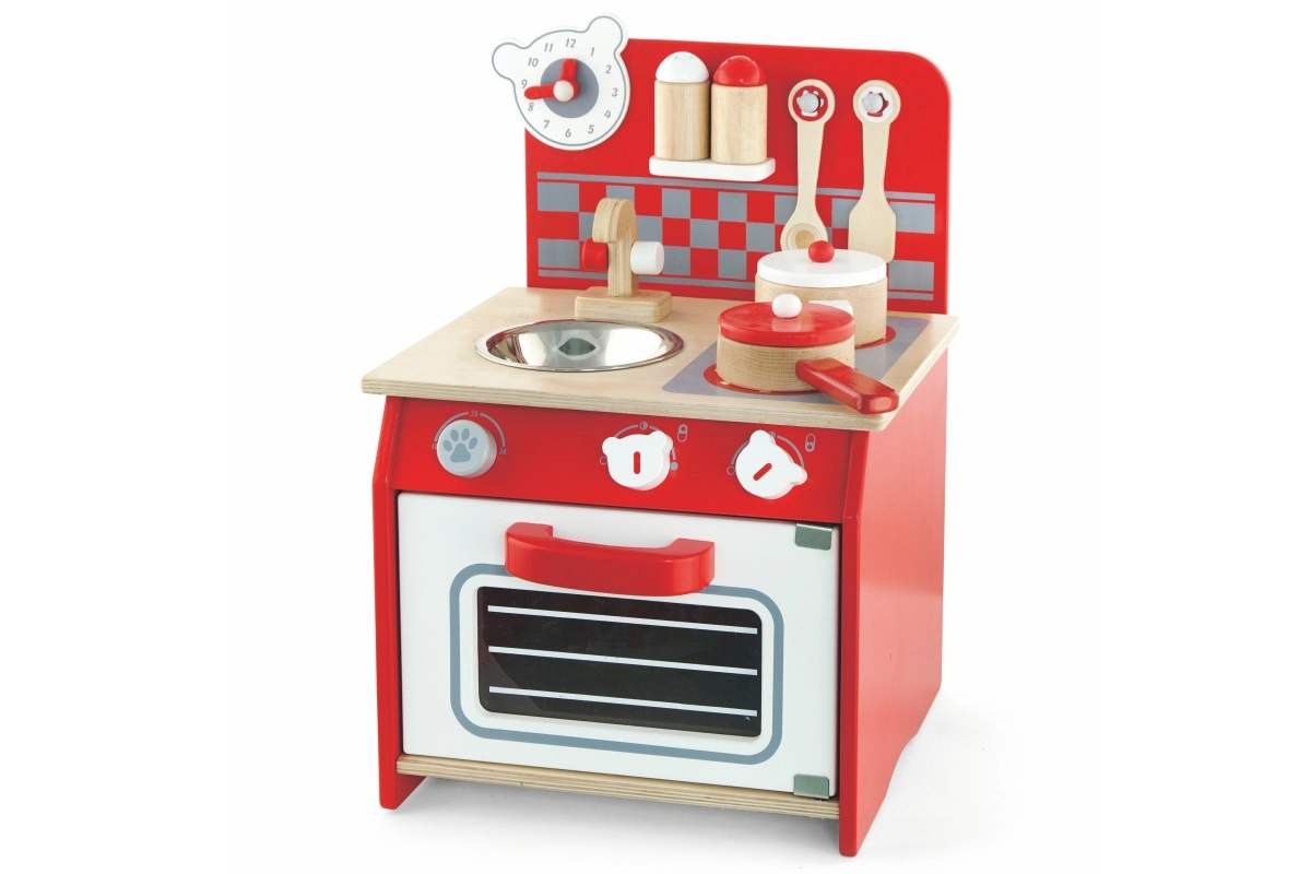 Stilinga medinė virtuvėlė vaikams siūlo realistiškas žaidimo galimybes su orkaite, virykle, kriaukle ir judinamu laikrodžiu. Puikiai tinka mažiesiems virėjams!