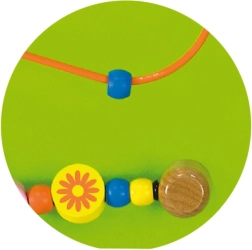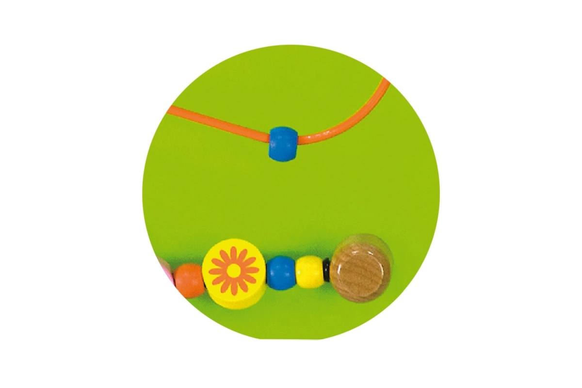 Spalvoti karoliukai ant lenkto vielinio takelio skatina smulkiąją motoriką, susikaupimą ir tolygius mažųjų pirštukų judesius.