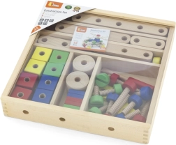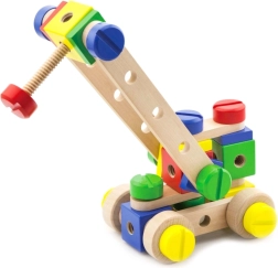 Ši kokybiška medinė kaladėlių rinktinė suteikia vaikams begalines kūrybos galimybes. Su 53 spalvotomis detalėmis, kaiščiais, varžteliais ir jungtimis lengvai pastatysite paprastus modelius ir fantazijos konstrukcijas. Pridedama aiški iliustruota brošiūra, kuri įkvepia ir žingsnis po žingsnio veda per pirmuosius projektus.