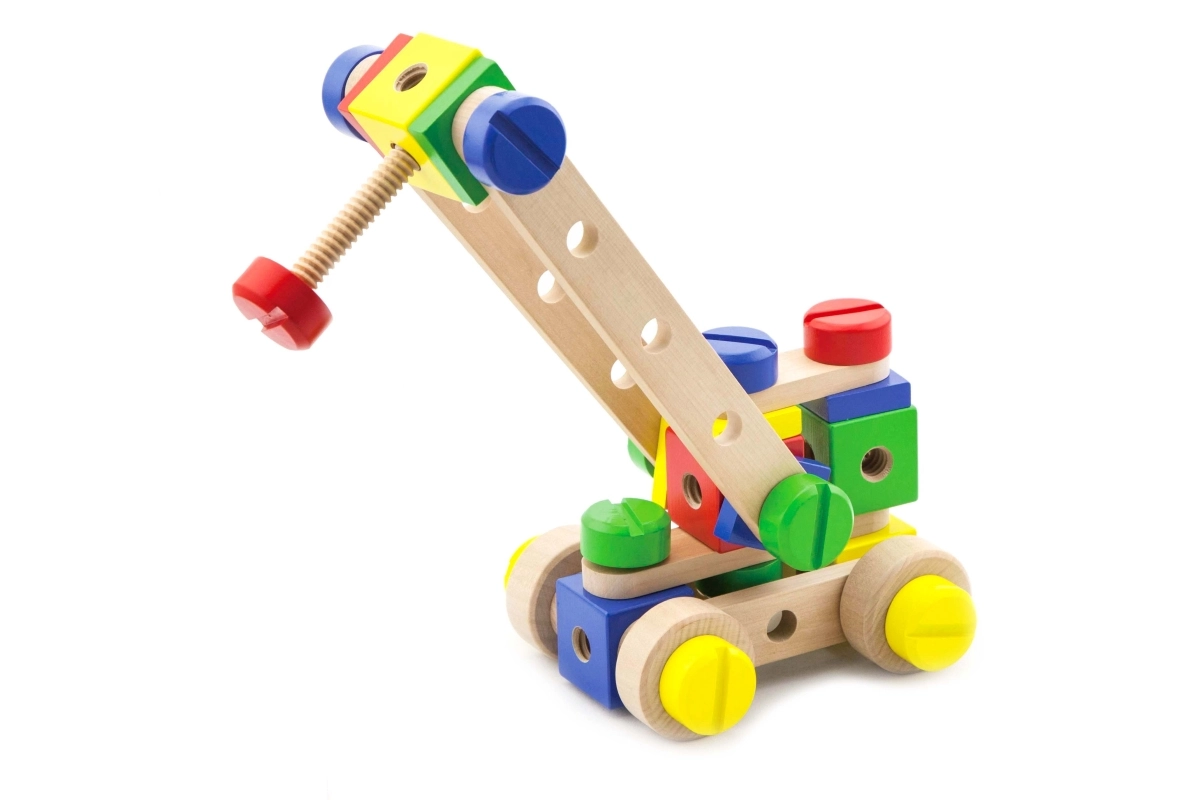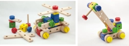 Įvairūs blokeliai, jungtys, strypeliai ir varžteliai leidžia vaikams statyti transporto priemones, kranus ir savitas originalias konstrukcijas.