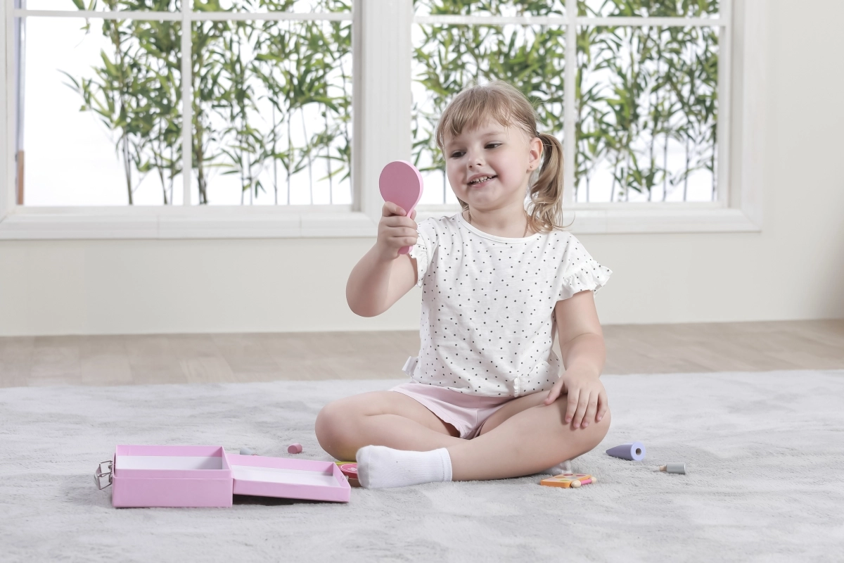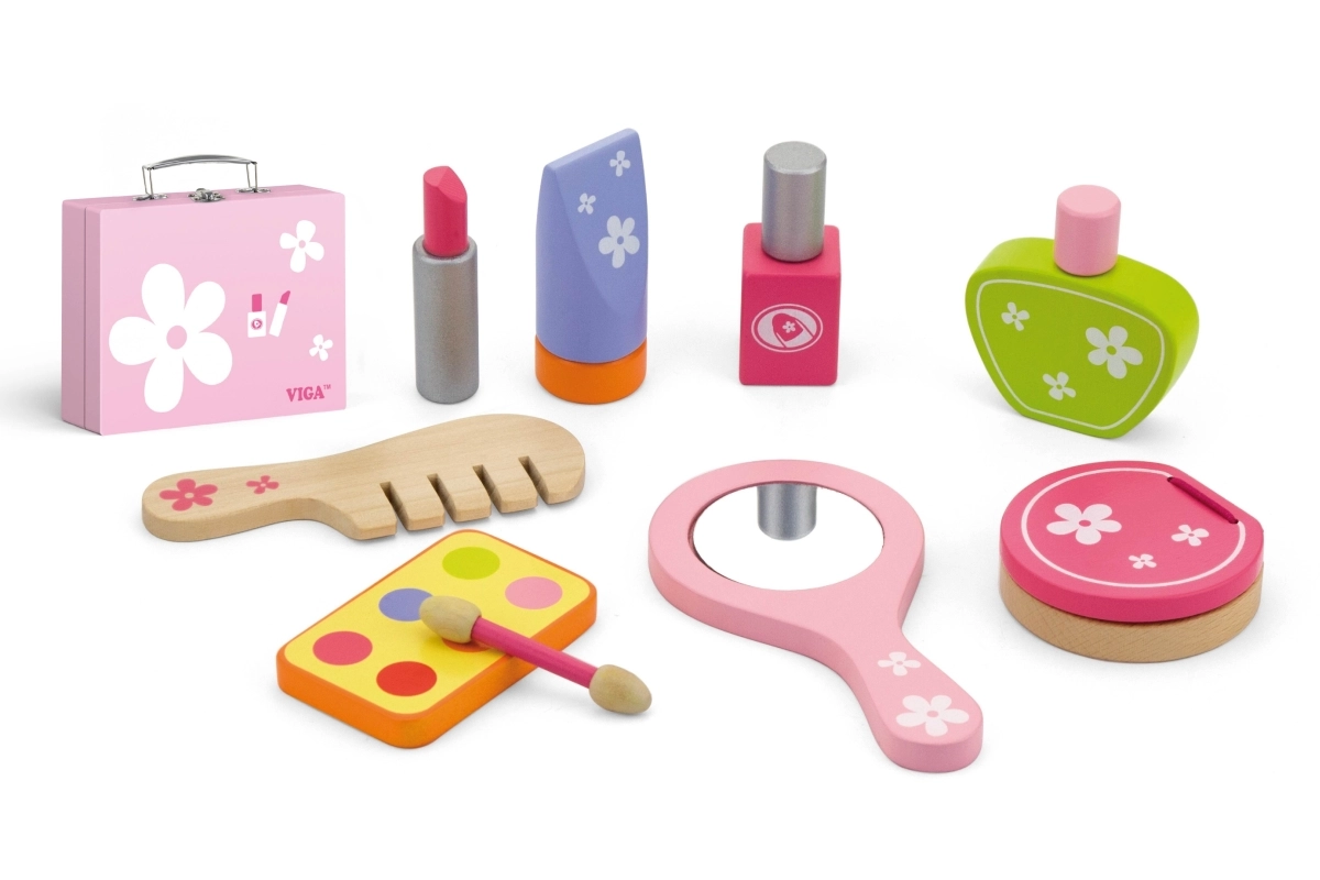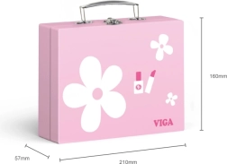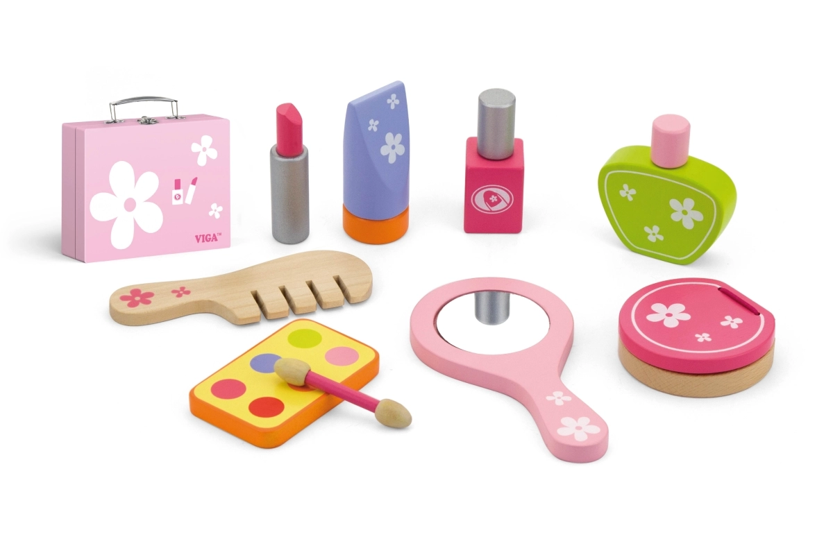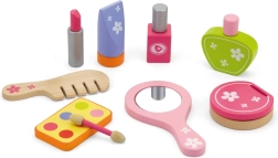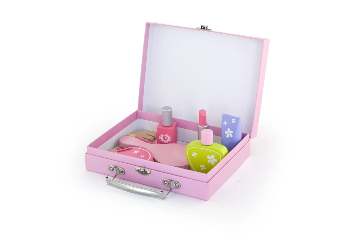 Stilingas medinis grožio rinkinys mažosioms puošeivoms patogiame lagaminėlyje pradžiugins kiekvieną vaiką nuo 3 metų. Jame yra viskas realistiškam grožio salono žaidimui – šukos, veidrodėlis, nagų lakas, lūpdažis, kvepalai ir kiti priedai. Dėl tvirto medžio ir glotniai nušlifuotų detalių žaidimas yra saugus ir ilgaamžis. Skatina vaizduotę, smulkiąją motoriką ir socialinius įgūdžius.