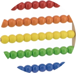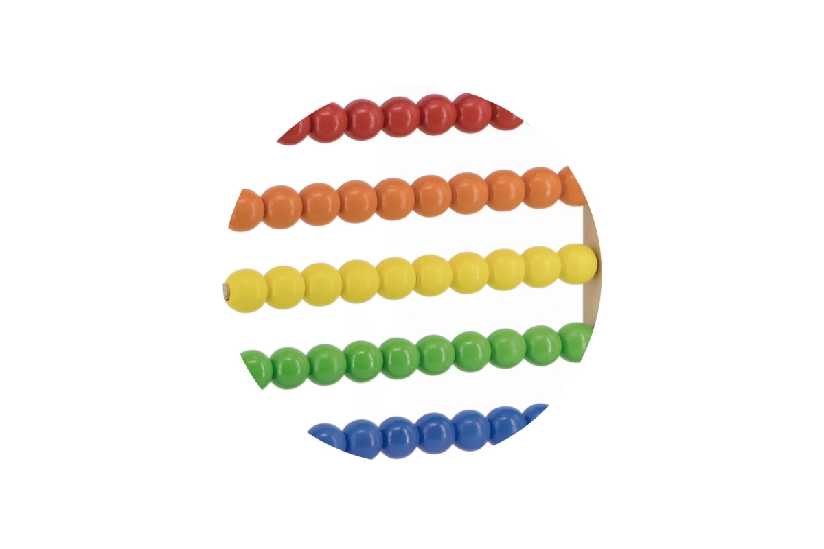 Kiekvienoje eilėje yra ryškių spalvų karoliukai, kurie padeda vaikams lengviau suprasti ir skaičiuoti. Šis vizualinis elementas taip pat skatina kūrybiškumą ir smulkiosios motorikos vystymąsi.