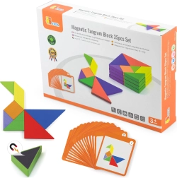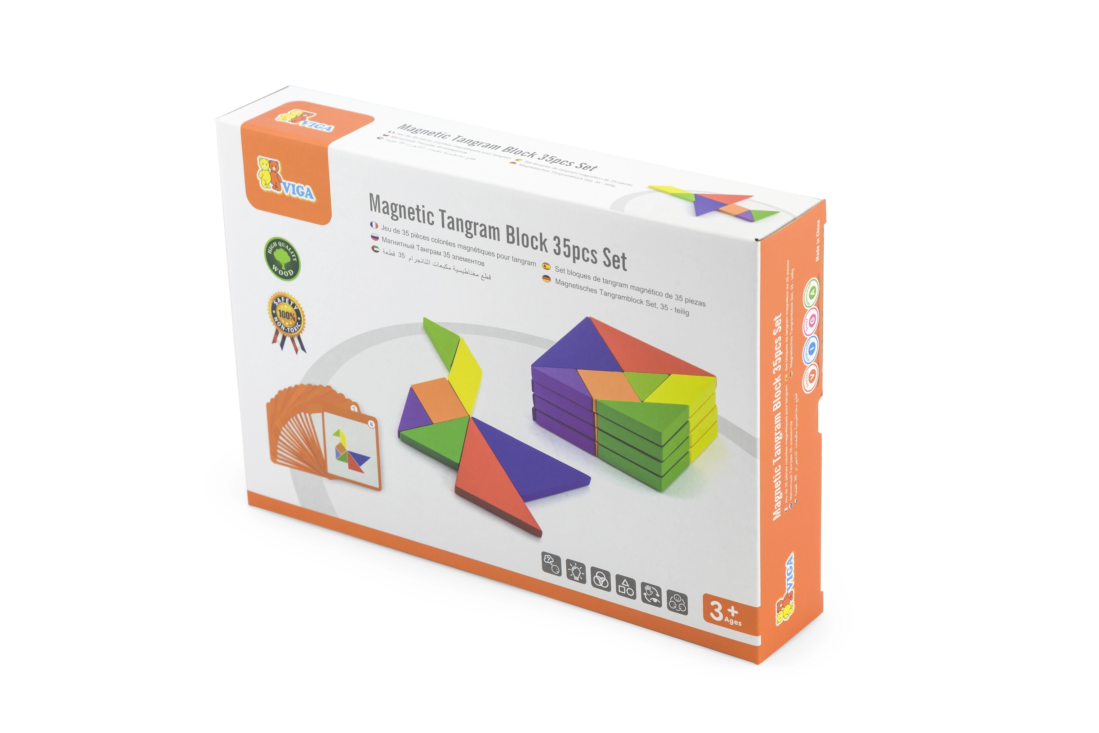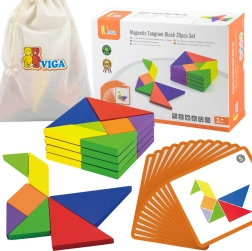 Atraskite linksmą logikos žaidimą vaikams – medinį tangramą iš VIGA. Ryškios geometrinės figūros ir kortelės su raštais lavina loginį mąstymą, kūrybiškumą ir smulkiąją motoriką. Aukštos kokybės FSC sertifikuota mediena ir netoksiški dažai užtikrina saugų žaidimą, kurio metu vaikai treniruoja koncentraciją ir spalvų bei formų atpažinimą, vadovaujantis Montessori principais.