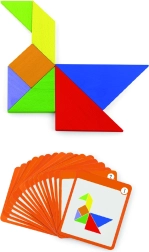Šis spalvingas medinis tangramas – puiki priemonė žaidimams namuose ir ikimokykliniam ugdymui. Vaikai dėlioja paveikslėlius pagal pridėtas korteles arba pagal savo fantaziją, taip lavindami erdvinę vaizduotę, kūrybiškumą ir problemų sprendimo gebėjimus. Kruopščiai nušlifuotos masyvios medienos detalės maloniai laikosi rankoje ir yra atsparios kasdieniam naudojimui.