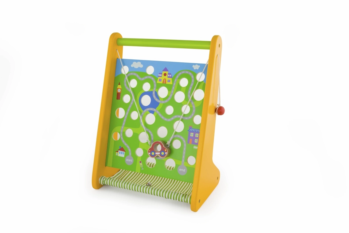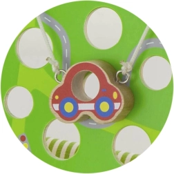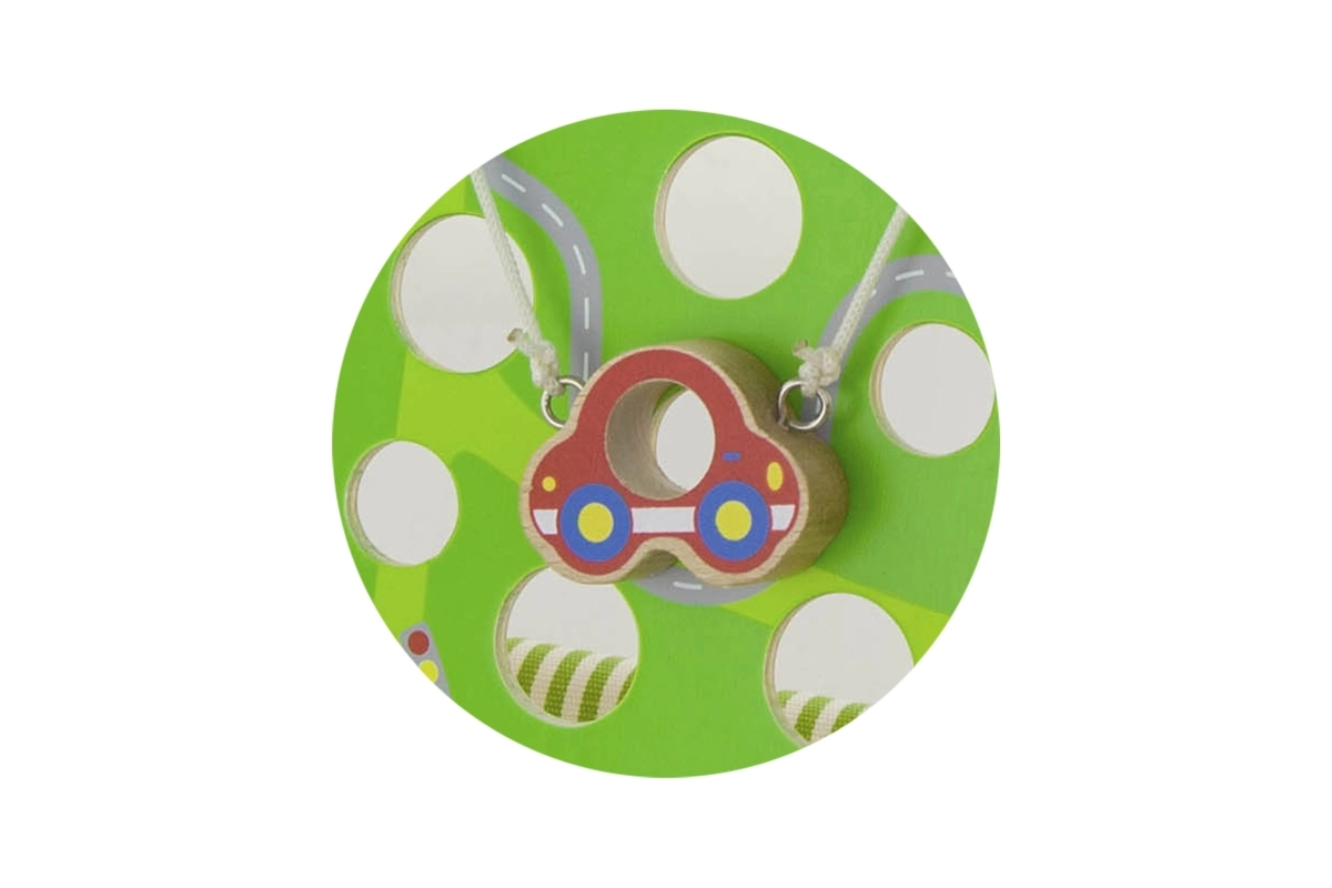 Medinis labirintas su mašinėle – puikus edukacinis žaislas vaikams nuo 3 metų. Naudodami dvi virveles vaikai gali judinti mašinėlę smagiu maršrutu, taip gerindami motorinius įgūdžius.
