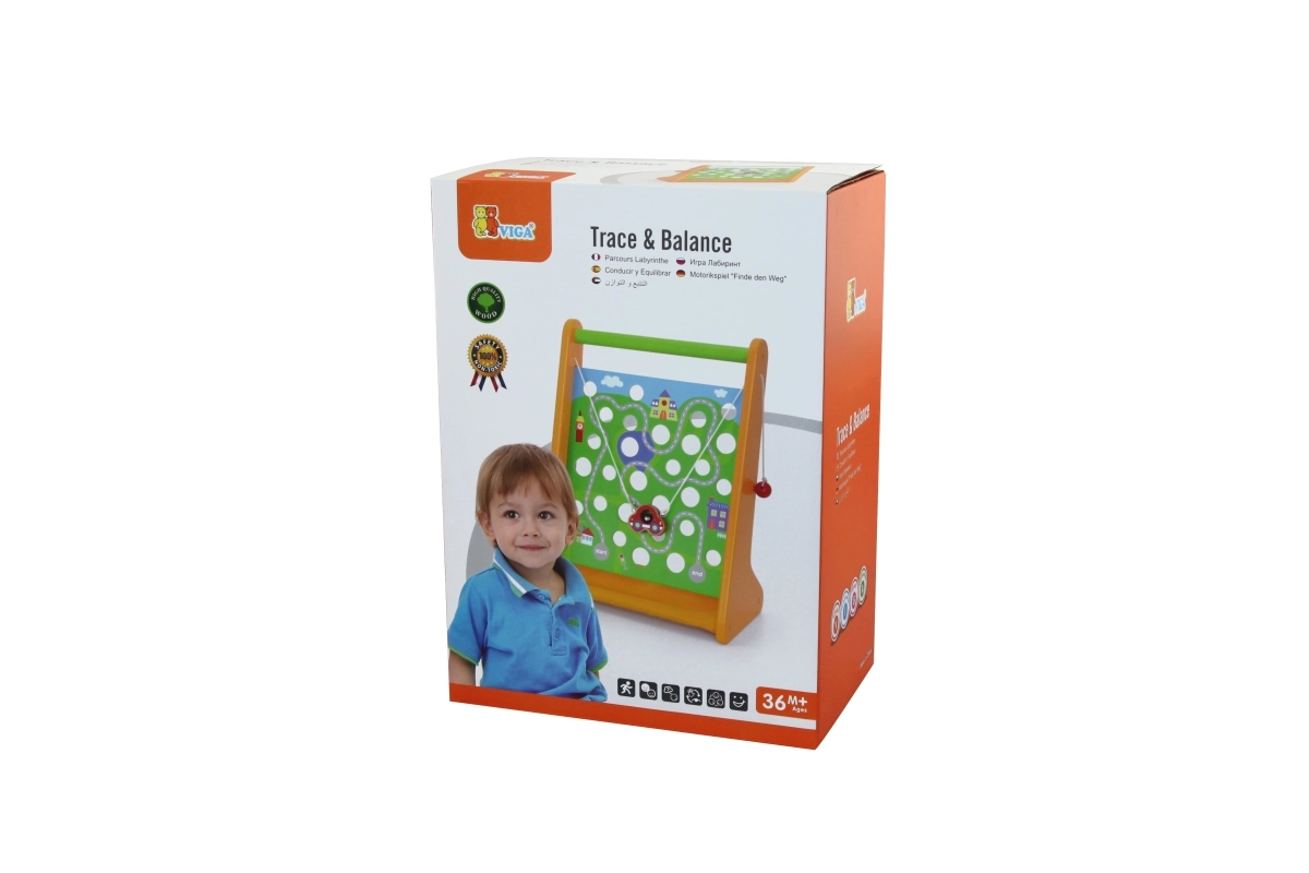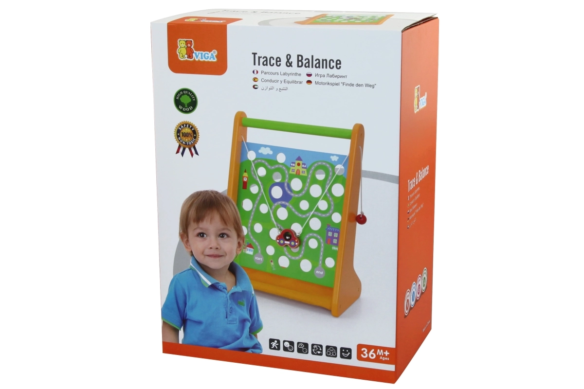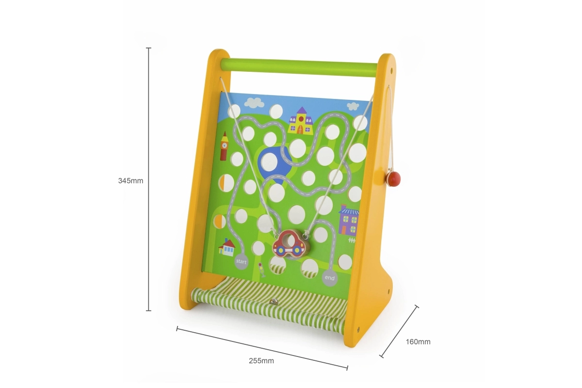 Suteikite vaikams pramogą ir kartu ugdykite įgūdžius su šiuo spalvingu mediniu labirintu. Jis padeda lavinti rankos ir akies koordinaciją bei pusiausvyros gebėjimą.