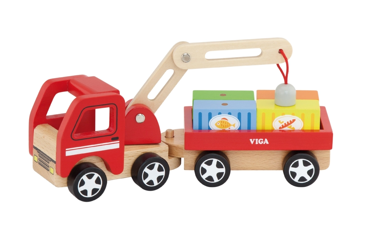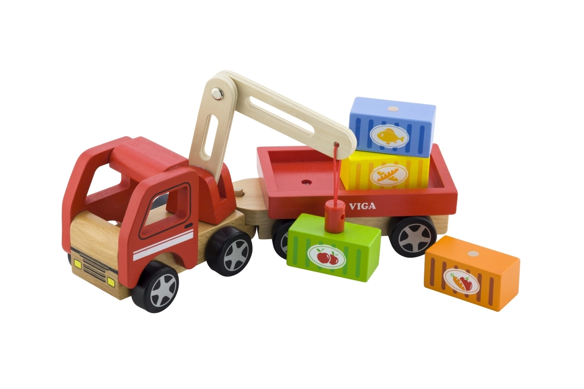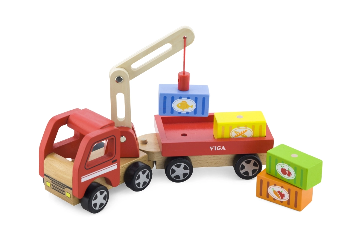 Medinis VIGA kranas su konteineriais puikiai tinka tiek darželiui, tiek namams. Jo judanti strėlė ir magnetiniai konteineriai ne tik suteikia daug pramogų, bet ir lavina vaikų smulkiąją motoriką.