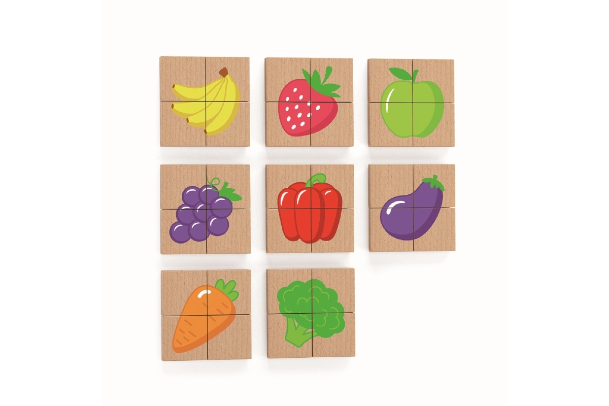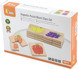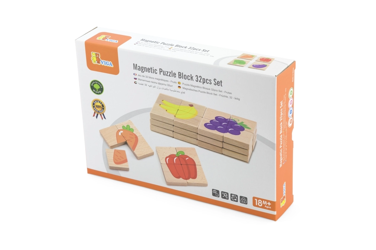 Rinkinyje yra iš viso 32 magnetinės detalės, kurias lengva paimti ir valdyti. Vaisių iliustracijos yra ryškios ir skatina vaiko vaizduotę.