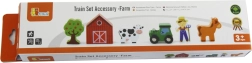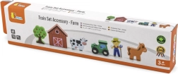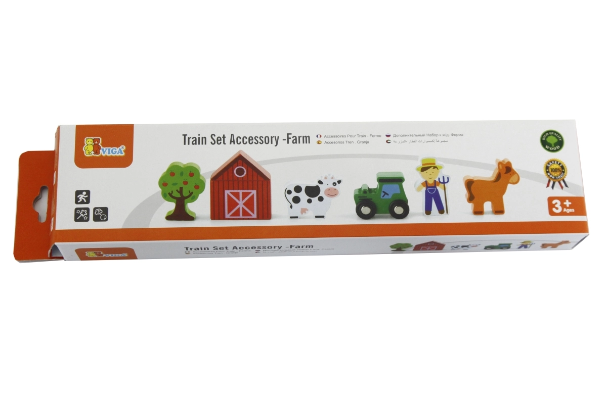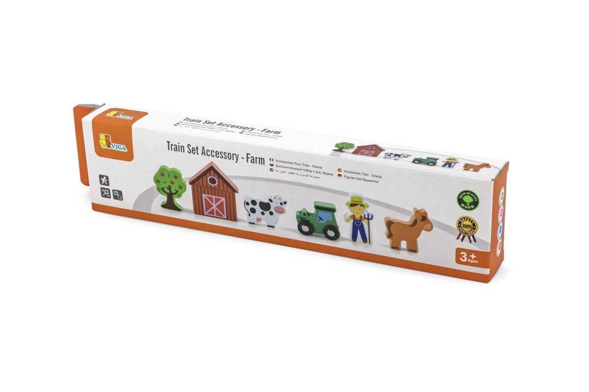 Šis VIGA ūkininko rinkinys puikiai tinka vaikams, kurie mėgsta kurti ir tyrinėti. Sudėtyje yra šešios atskirai stovinčios medinės figūrėlės: tvartas, medis, karvė, arklys, traktorius ir ūkininkas. Figūrėlės yra stabilios ir pagamintos iš kokybiškos medienos, todėl užtikrinamas ilgaamžiškumas. Traktorius turi veikiančius ratus, tad jį lengva integruoti į žaidimus su traukinių trasa.