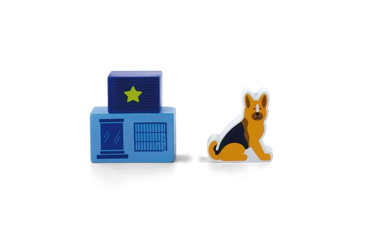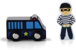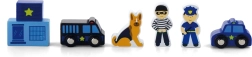 Jūsų vaikai gali kurti savo istorijas ir scenarijus su šiomis spalvingomis figūromis, kurios perteikia autentišką policijos scenos atmosferą: nuo policininko iki vagies ir policijos šuns. Visos figūros pagamintos iš aukštos kokybės medžio, užtikrinančio patvarumą ir ilgą tarnavimo laiką.