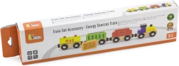 Spalvingas medinis traukinukas su lokomotyvu ir 3 vagonais energijos šaltinių tema pradžiugins mažuosius mašinistus. Vagonai lengvai jungiasi dėl magnetinių jungčių, yra suderinami su dauguma medinių geležinkelių ir skatina vaizduotę bei smulkiąją motoriką. Vieno vagono matmenys apie 7 × 4,5 × 2,5 cm, tinkama nuo 3 metų.