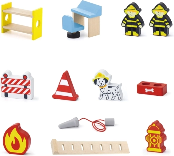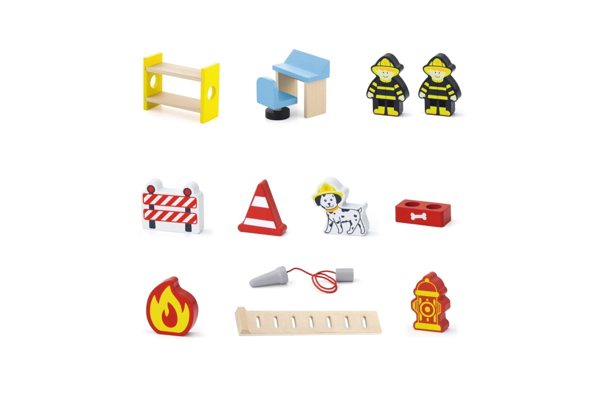 Pakuotėje rasite viską, ko reikia iškart pradėti žaisti: stoties pastatą, 2 ugniagesius, sraigtasparnį, gaisrinės automobilį, hidrantą, dviaukštę lovą, kėdę, valdymo pultą ir kopėčias. Medžiagos ir dažai yra saugūs ir netoksiški, kad vaikai galėtų žaisti be rūpesčių. Idealu kaip dovana, kuri pradžiugins ir tarnaus ilgai.