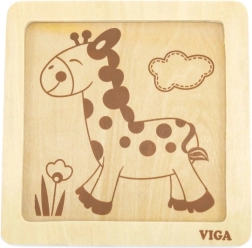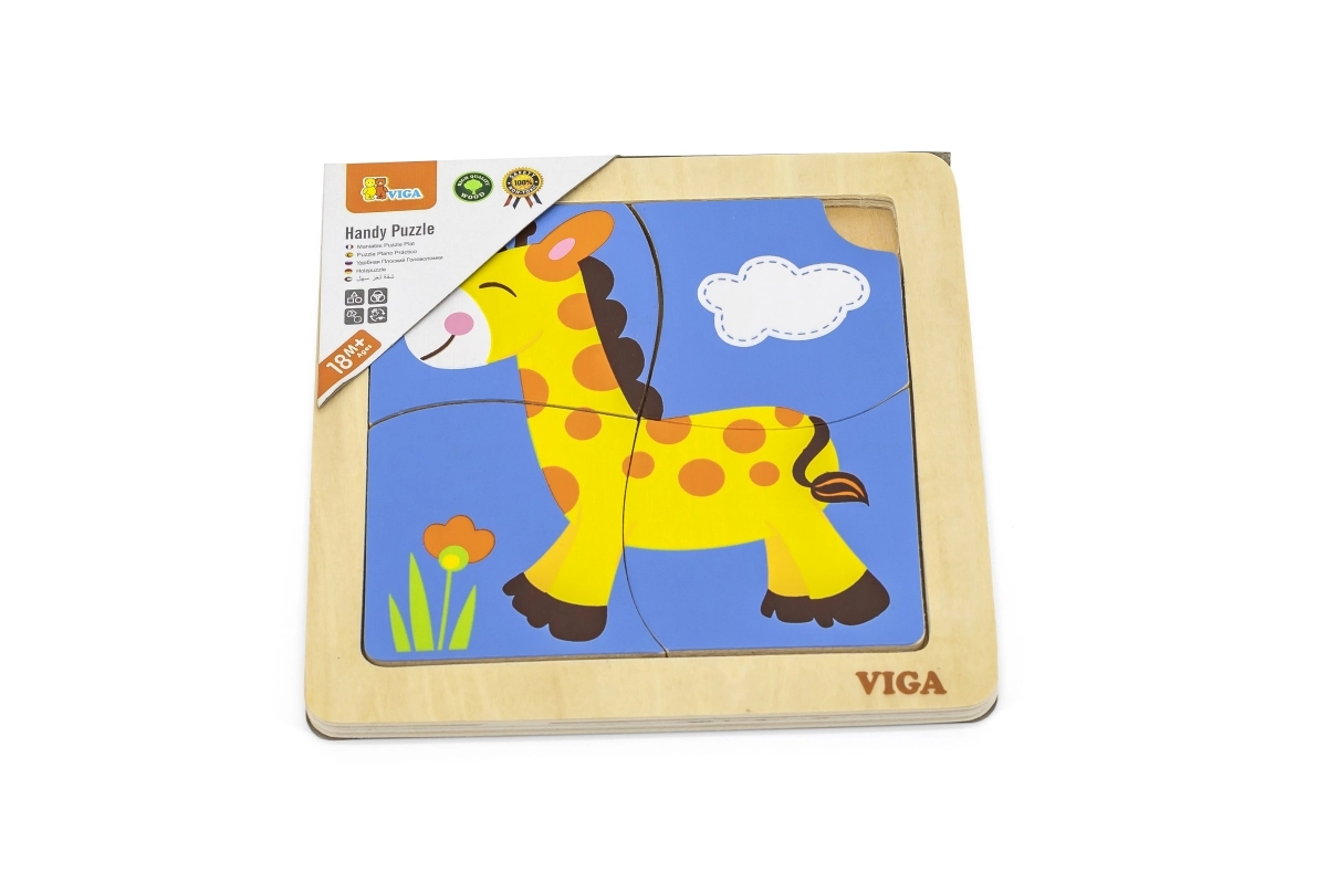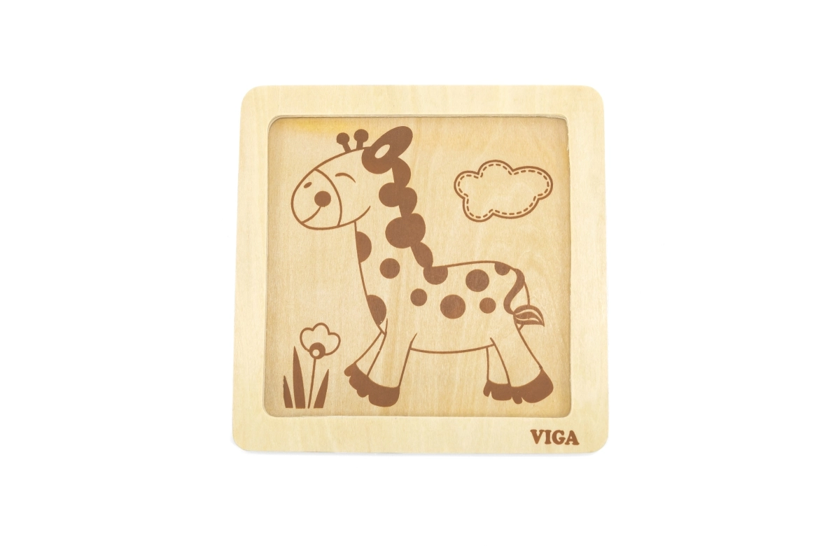 Praturtinkite vaikų žaidimus išradinga Viga medine dėlione, kuri įtraukia į fantazijos ir pažinimo pasaulį. Naudodami keturis gardžiai spalvingus žirafos detales vaikai mokosi lavinti: