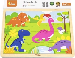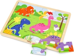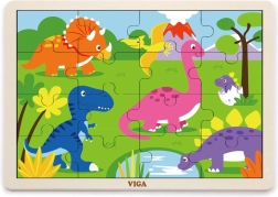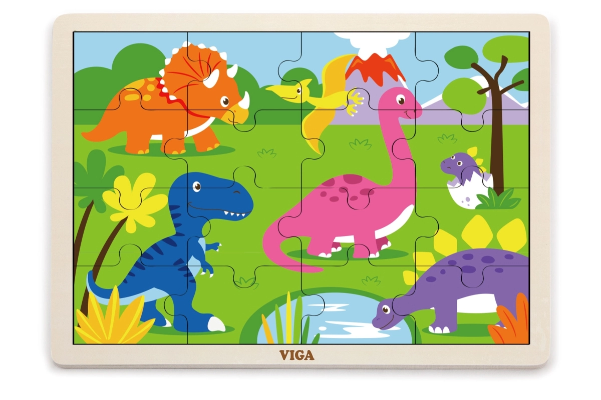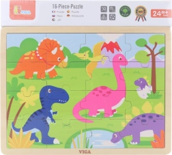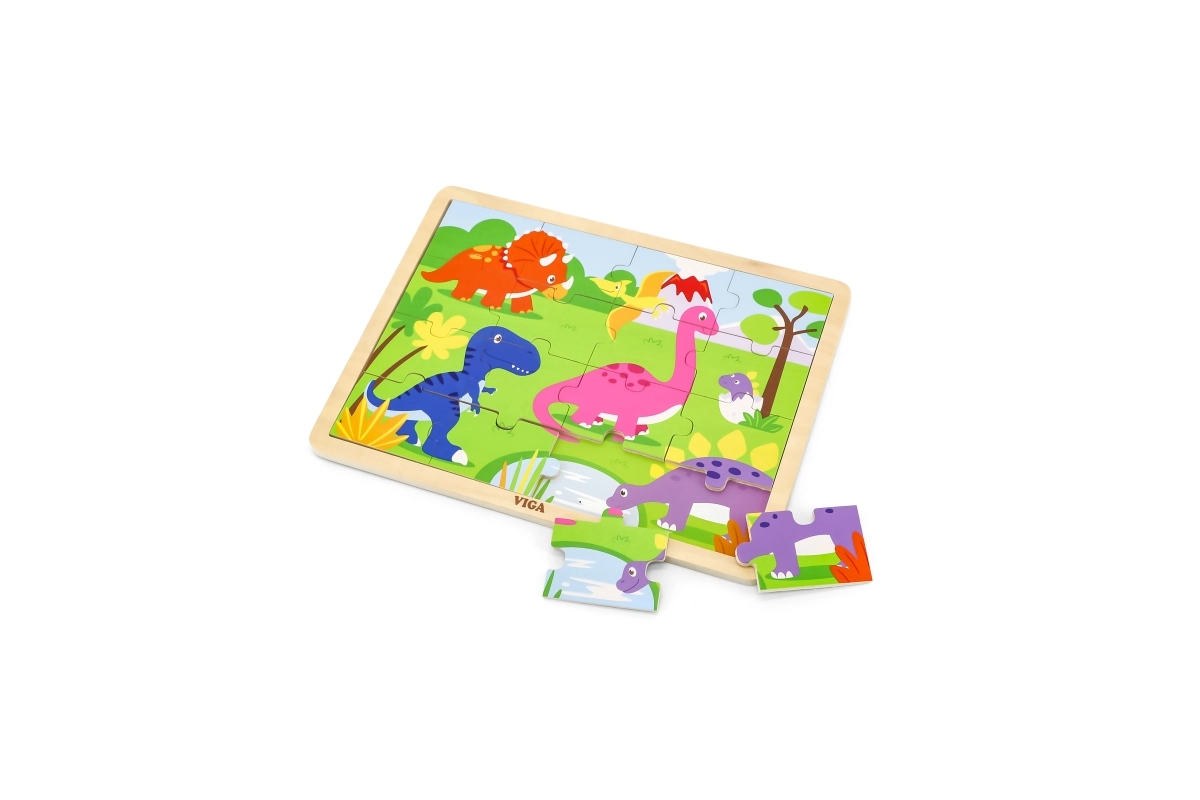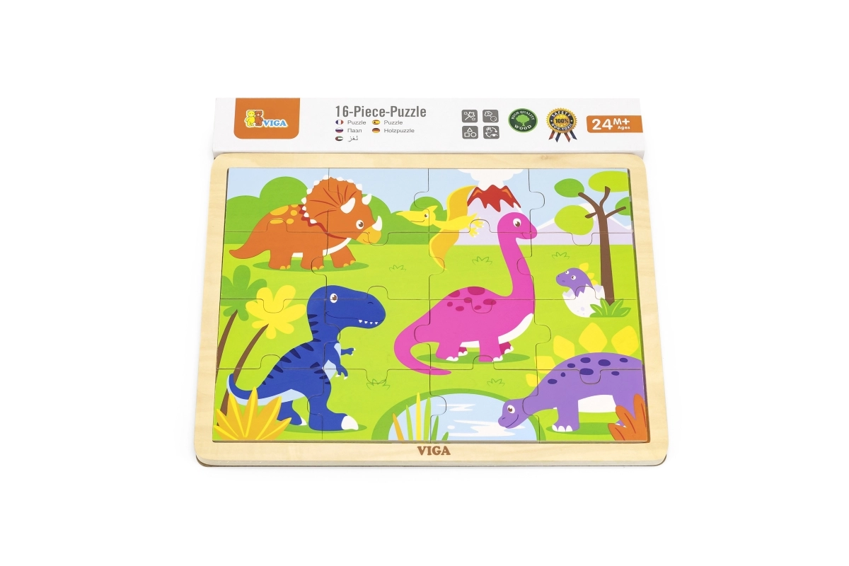 Atraskite kokybišką VIGA medinę dėlionę su dinozaurais, kuri suteiks vaikams pirmąjį džiaugsmą dėliojant. 16 dalių lavina smulkiąją motoriką, akių–rankų koordinaciją ir loginį mąstymą. Detales galite dėlioti ant medinės lentelės su rėmeliu arba sudėti paveikslėlį be rėmelio. Sudėtos dėlionės dydis apie 27,5 × 20 cm, tinkama nuo 24 mėn.