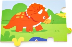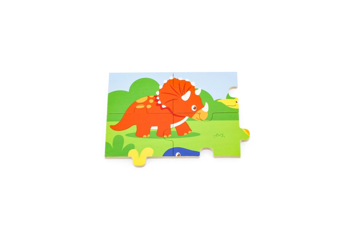 Linksmus dinozaurus ir aiškias 16 dalių vaikai įveiks jau nuo 24 mėnesių. Dėliojimas natūraliai lavina smulkiąją motoriką, susikaupimą ir formų bei spalvų suvokimą.