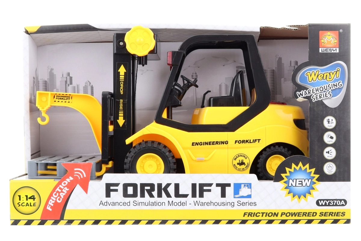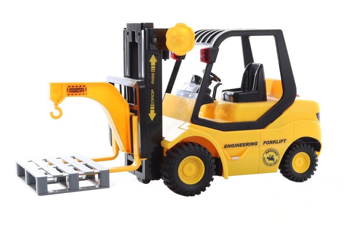 Realistiškas plastikinis krautuvas masteliu 1:14 pradžiugins mažus statytojus nuo 3 metų. Paspaudus mygtuką jis skleidžia garsus ir šviečia, kas sustiprina realistišką žaidimą sandėlyje ar statybose. Maitinimą užtikrina 3× AG13/LR44 baterijos, kurios yra rinkinyje.