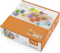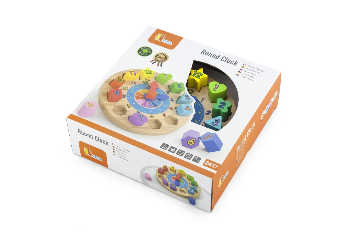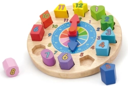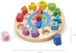 Smagus ir edukacinis medinis laikrodis mažiausiems padeda mokytis pažinti laiką, spalvas ir formas. Jame yra 12 spalvotų įdedamų kaladėlių su skaičiais, kurios lavina smulkiąją motoriką, logiką ir akių–rankų koordinaciją. Idealiai tinka vaikams nuo 24 mėnesių.