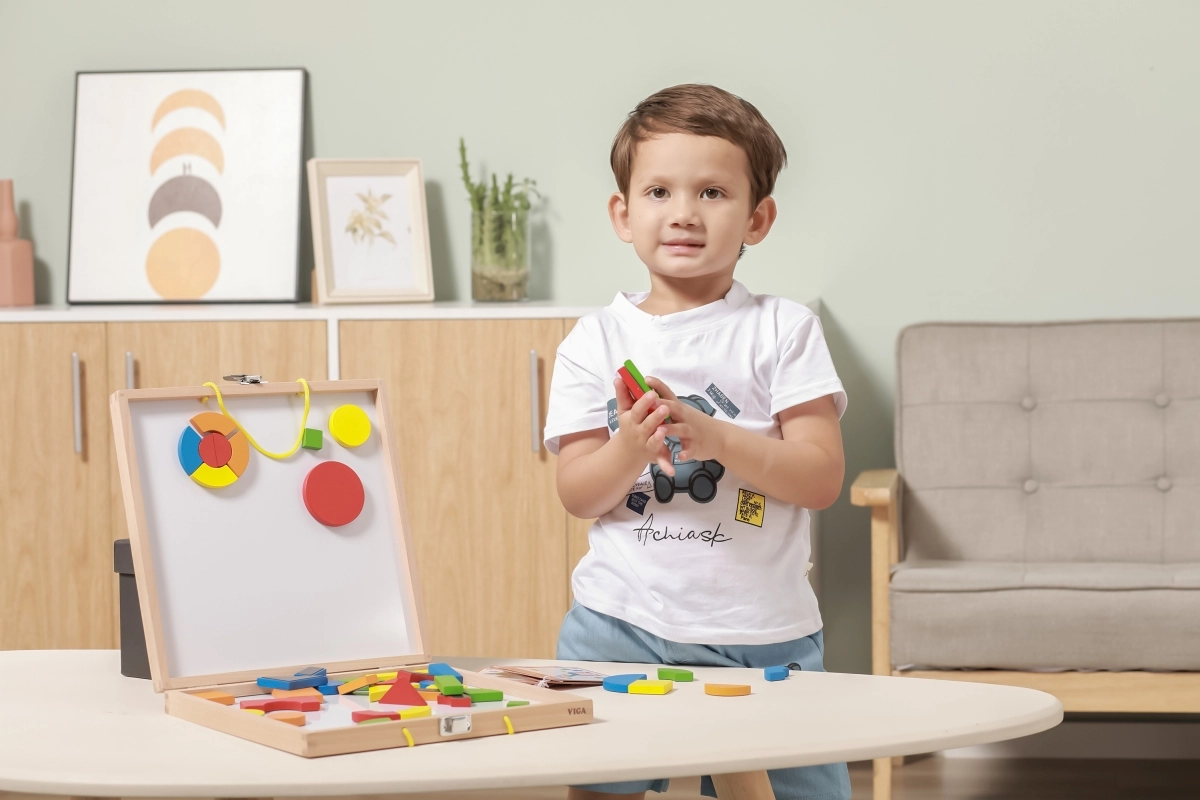 Šis universalus magnetinis konstruktorius suteikia vaikams begalę galimybių dėlioti formas, paveikslėlius ir paprastas mozaikas. Abi vidinės lagamino pusės veikia kaip magnetinė lenta, todėl detalės tvirtai laikosi vietoje, o kūrimas yra patogus ir aiškus. Dėl kompaktiškų matmenų idealiai tinka kelionėms, automobiliui ar svečiuose.