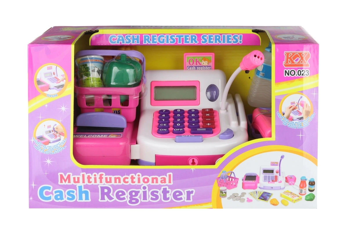 Kasos aparatas turi juostinį konvejerį, skaitytuvą ir skyrelį monetoms. Dėl to vaikai lavina pagrindinius skaičiavimo įgūdžius, bendravimą ir socialinius įgūdžius. Maitinimas: 2× AA baterijos (į komplektą neįeina).