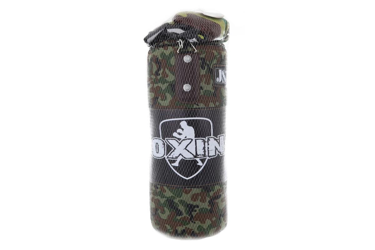 Vaikiškas bokso rinkinys mažiesiems sportininkams apima bokso maišą su pakabinimo grandine ir dvi poras bokso pirštinių. Idealiai tinka koordinacijai, jėgai ugdyti ir saugiam, smagiam sportui namuose. Tinka vaikams nuo 3 metų.