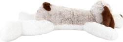 Šis didelis gulintis pliušinis šuniukas pradžiugins kiekvieną vaiką ir gyvūnų mylėtoją. Jis maloniai minkštas, švelnus liesti, o dėl 100 cm dydžio puikiai tinka kaip glostomas draugas, galvos pagalvėlė ar dekoratyvinis akcentas lovytei ar vaikų kampeliui. Kokybiškas apdirbimas ir subtilios detalės užtikrina saugų ir patogų žaidimą net patiems mažiausiems.