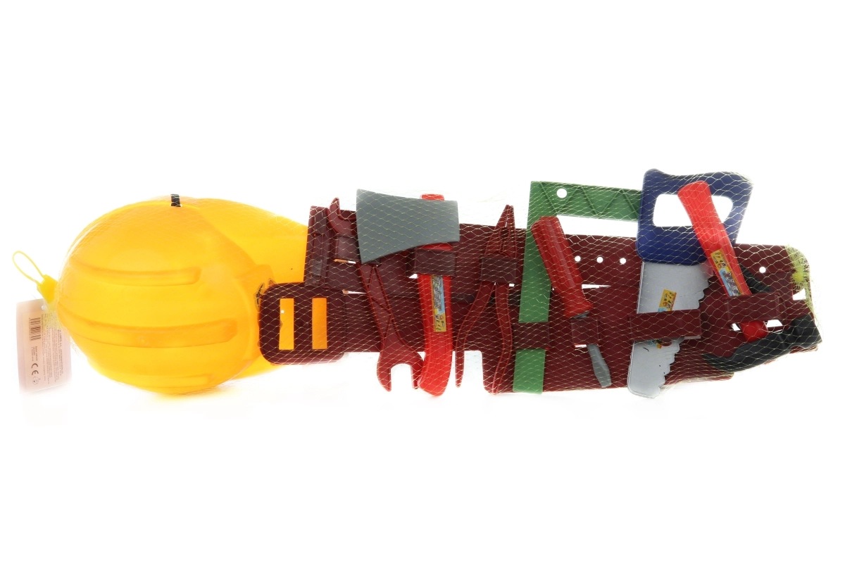 Puikus plastikinis įrankių rinkinys mažiesiems meistrams, kuriame yra šalmas ir diržas. Tinka vaikams nuo 3 metų.