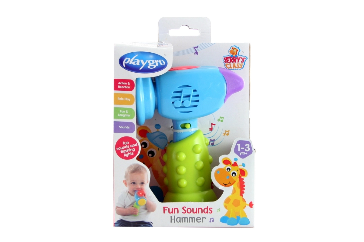 Smagus vaikiškas plaktukas iš PLAYGRO kiekvieno smūgio metu skleidžia 4 skirtingus garsus ir lydi šviesos efektai. Į komplektą įeina 2× AAA baterijos, todėl vaikai gali žaisti iš karto. Patvari konstrukcija, kompaktiški matmenys ir bandymai pagal griežčiausius Europos standartus užtikrina saugų žaidimą vaikams nuo 1 iki 3 metų.
