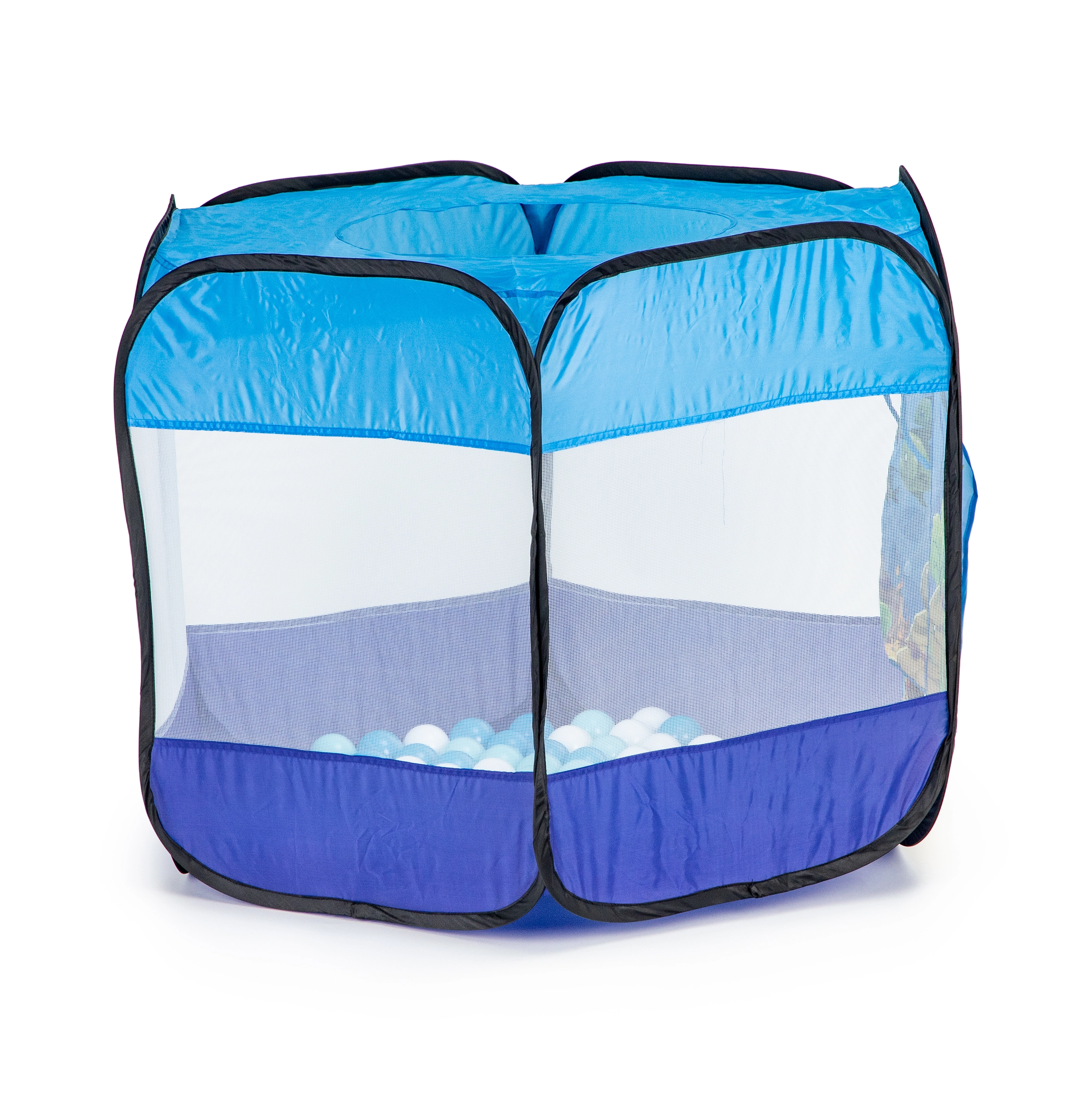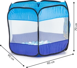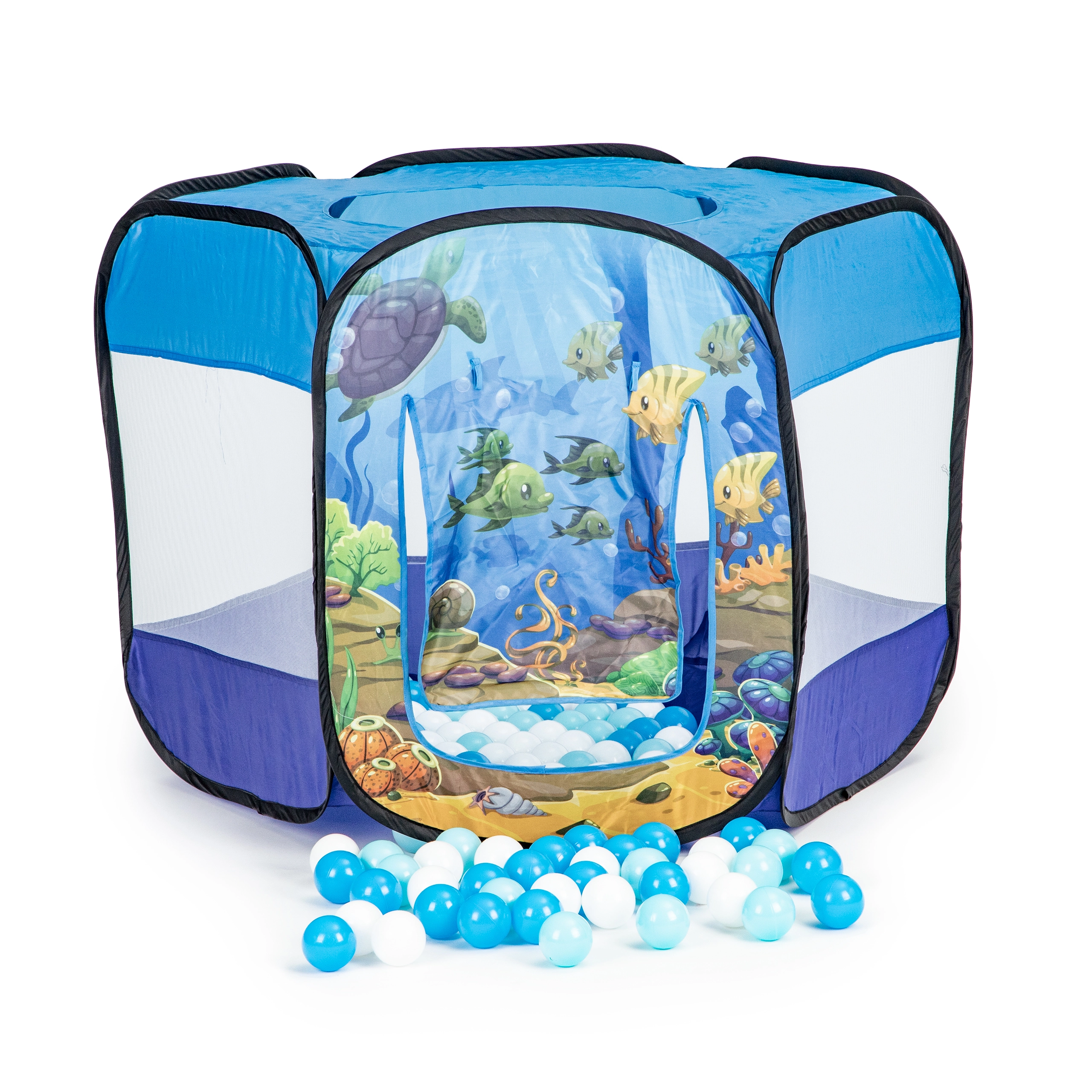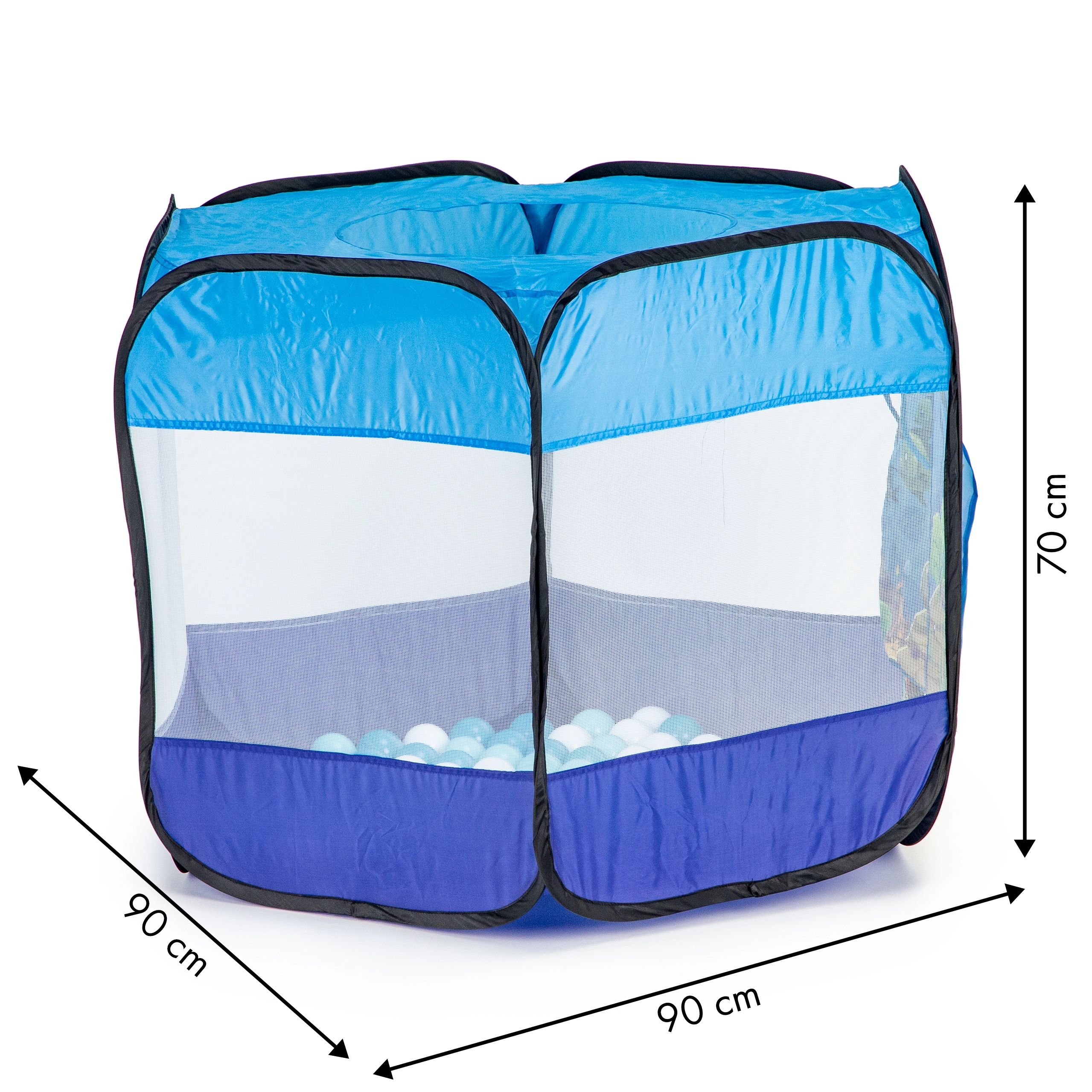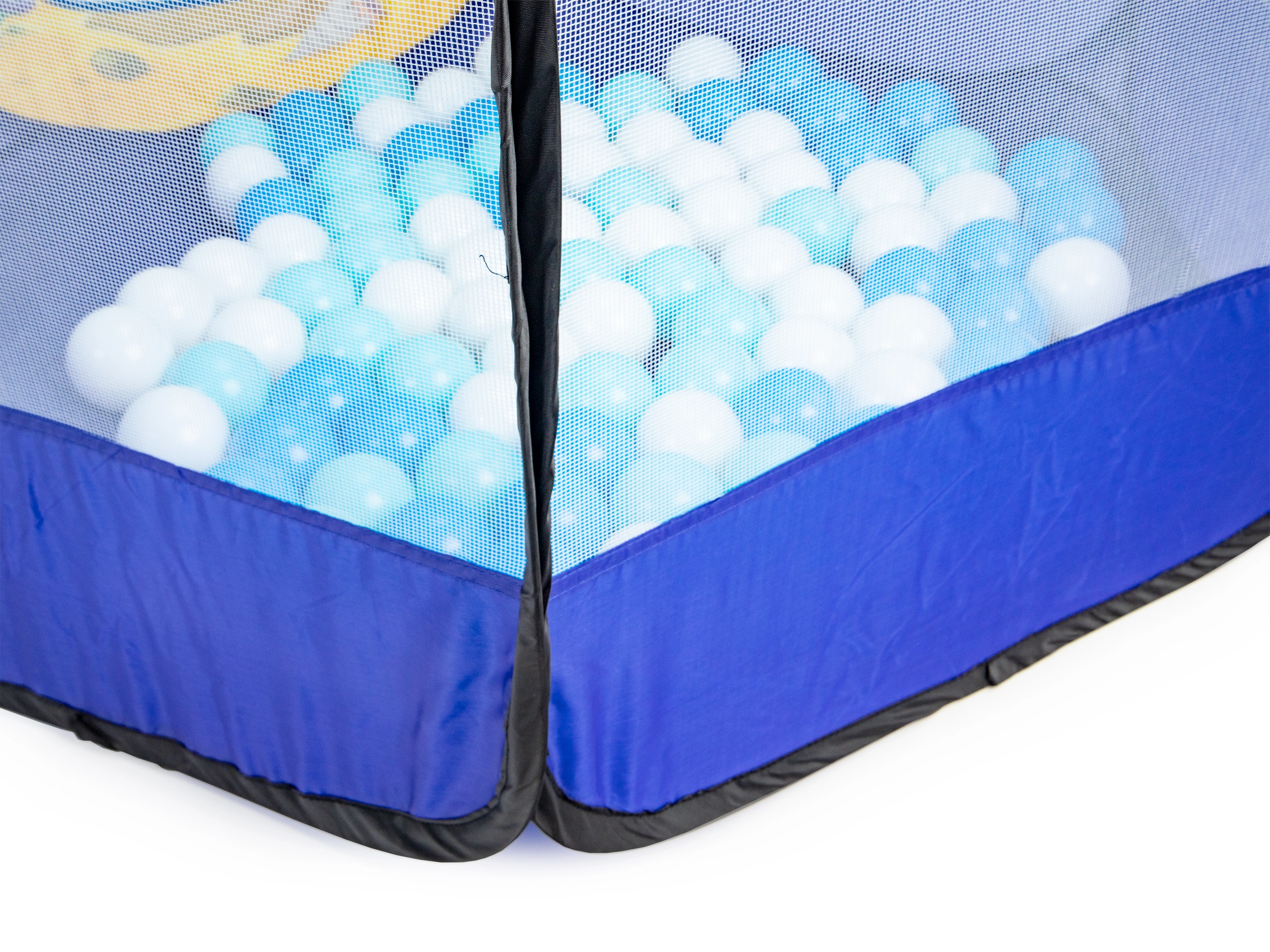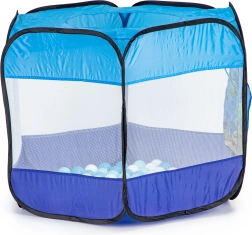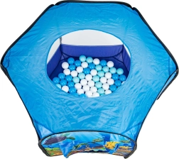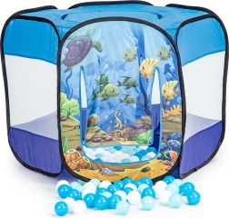 Lengvas ir stabilus iššokantis (pop-up) vaikų namelis su povandeninio pasaulio motyvu pavers bet kurį kambarį ar sodą smagia žaidimų aikštele. Komplekte yra 100 spalvotų kamuoliukų, orui pralaidžios tinklinės sienelės, ritininis įėjimas ir langelis stoge. Savaime išsiskleidžianti konstrukcija užtikrina greitą surinkimą ir lengvą nešiojimą.