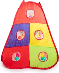Smagi vaikų žaidimų sistema su spalvingu nameliu, tuneliu ir sausuoju kamuoliukų baseinu žaidimams namuose ir kieme. Komplekte yra 100 spalvotų kamuoliukų, mėtomas krepšys ir taikinio sienelės su 3 lipniais kamuoliukais su velcro. Savaime išsiskleidžiama konstrukcija, greitas surinkimas ir lengvas poliesterio uždangalas užtikrina lengvą naudojimą ir ilgas aktyvaus žaidimo valandas.