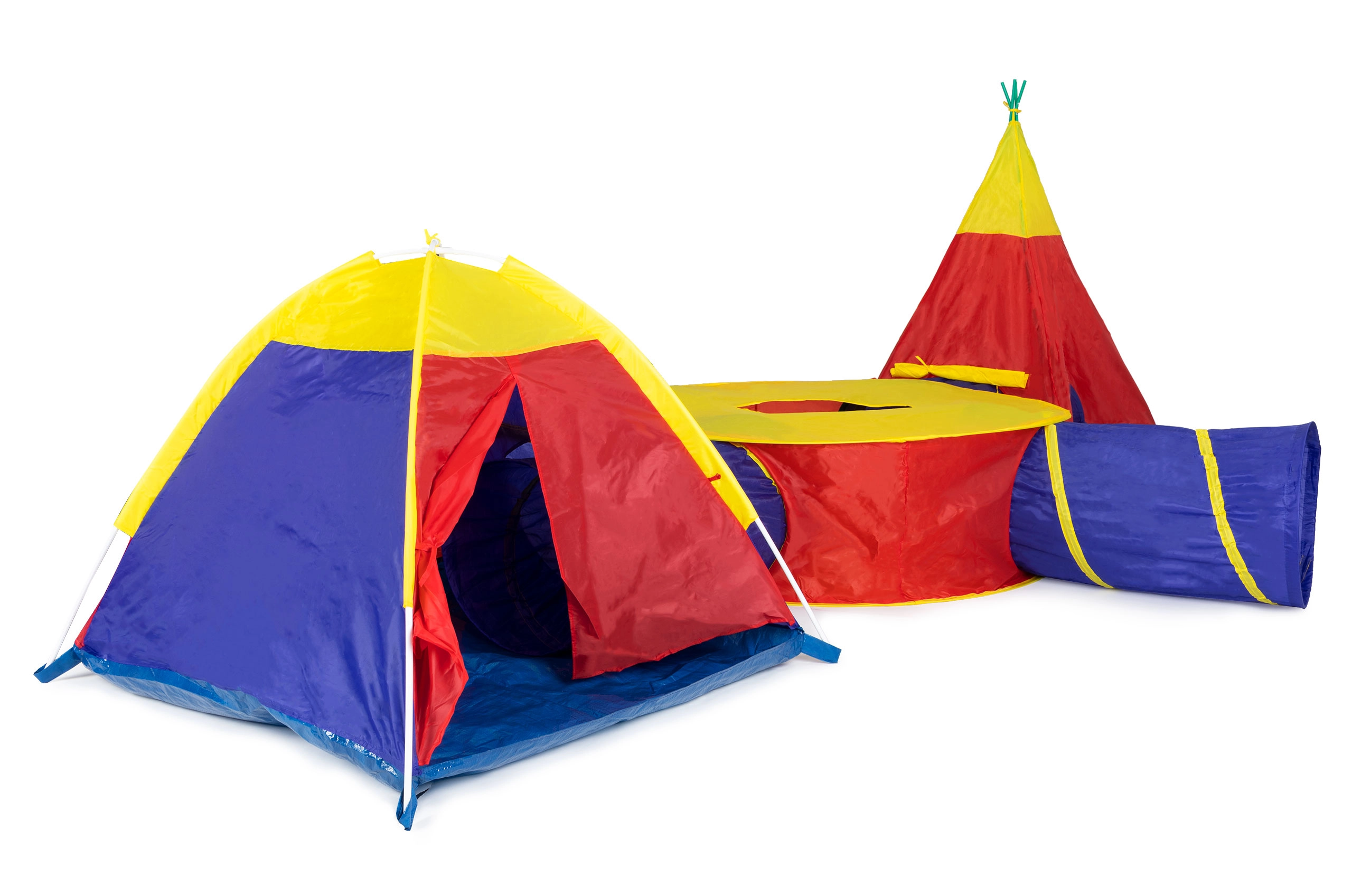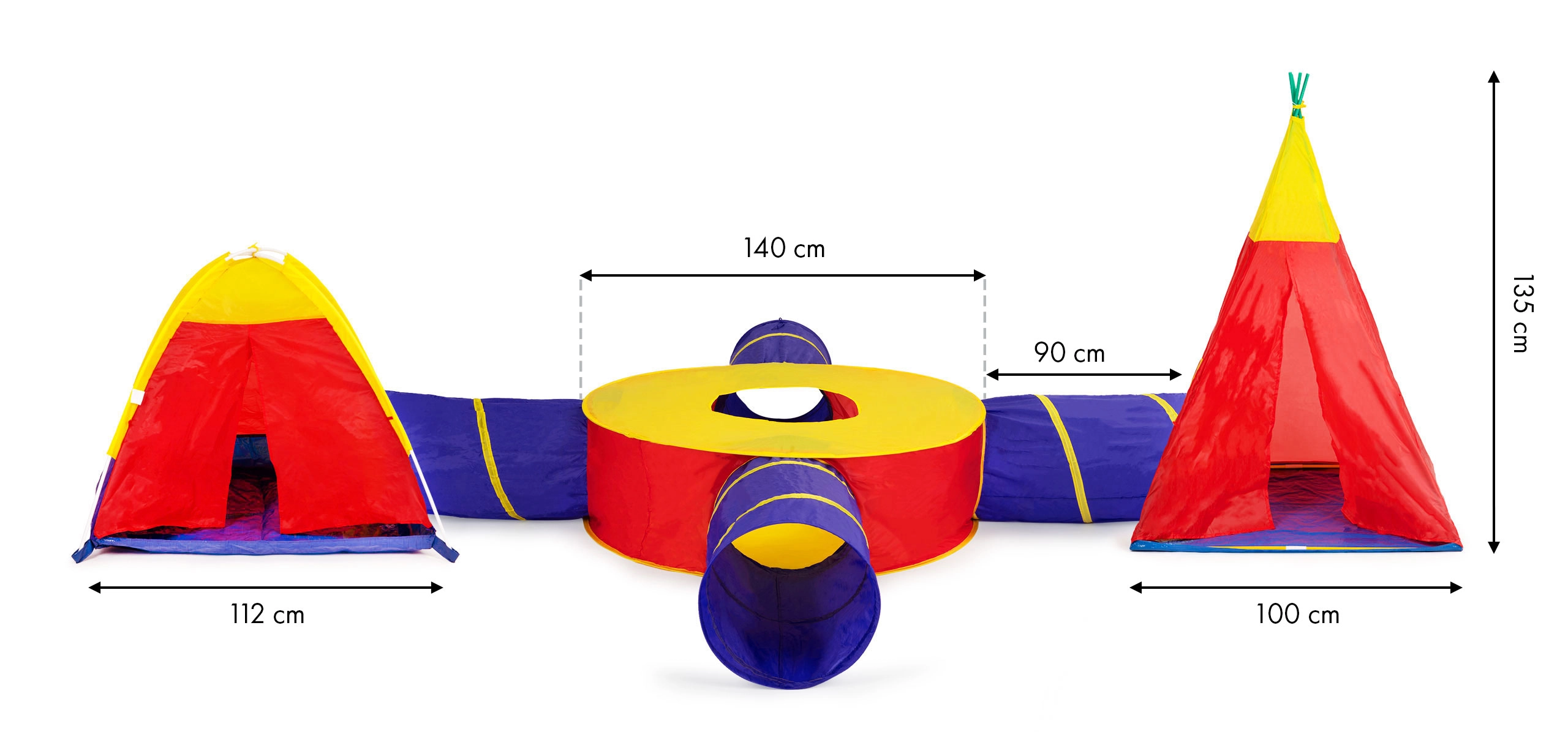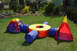 Kombinuokite iglų, tipi, apvalų centrą ir 4 tunelius bet kokia tvarka. Kiekvieną dalį galima naudoti ir atskirai – idealiai tinka bute ir sode.
