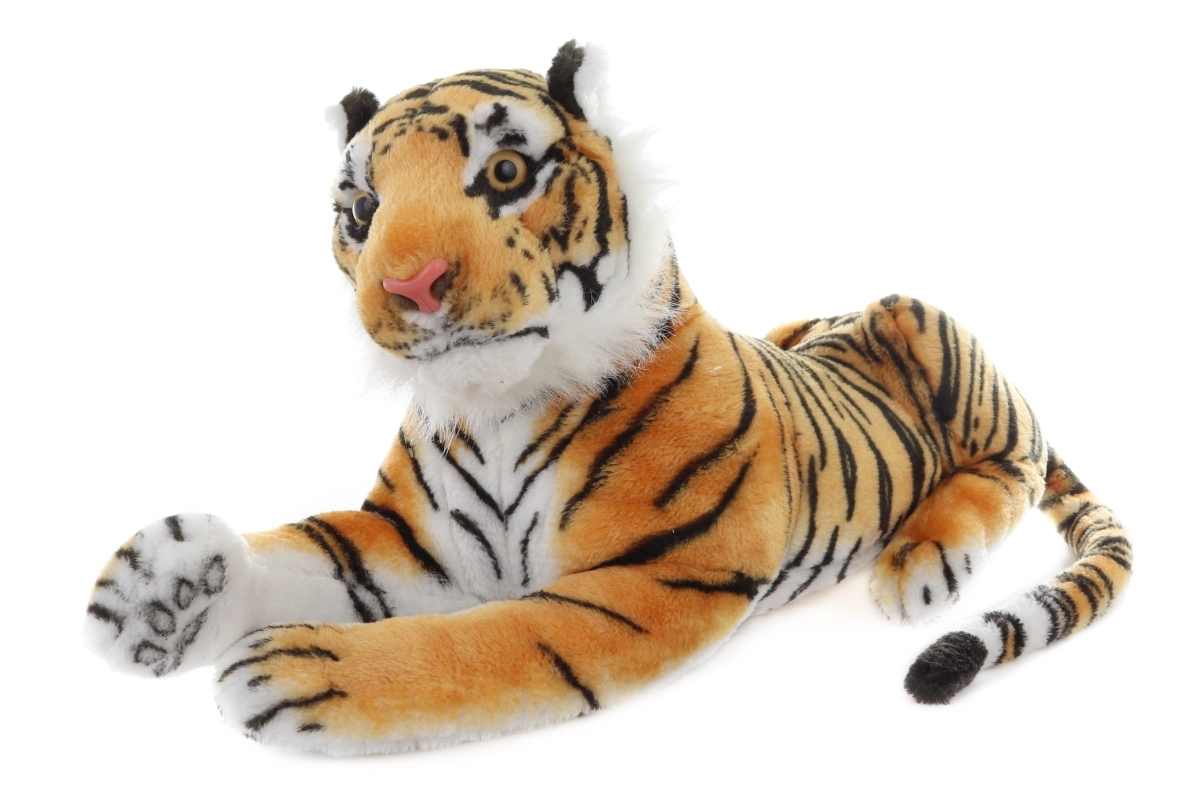 Rudas pliušinis tigras pradžiugins kiekvieną mažą gyvūnų mylėtoją. Dėl kokybiško užpildo ir švelnaus paviršiaus jis puikiai tinka glostymui ir kaip dekoracija vaiko kambaryje. Realistiškas atlikimas su ilga uodega suteikia žaislui autentišką išvaizdą.