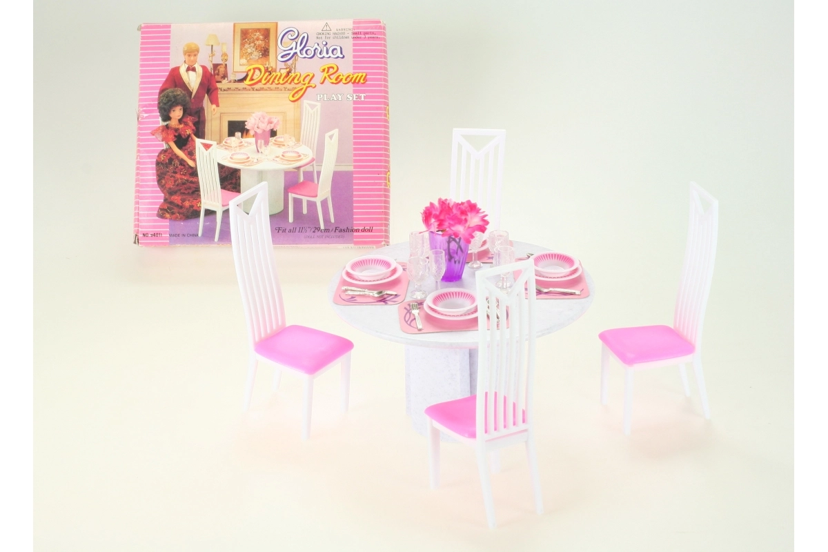 Sukurkite lėlėms tobulai padengtą stalą. Glorie valgomojo rinkinys suteikia viską, ko vaikams reikia šeimos vakarienei ar šventinei puotai surengti – nuo stalo serviruotės iki patogaus sėdėjimo. Kokybiškas plastikas užtikrina lengvą priežiūrą ir ilgaamžiškumą.