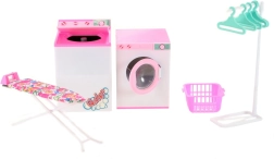 Rinkinyje yra viskas, ko reikia mažosioms šeimininkėms: kompaktiška skalbimo mašina ir džiovyklė, stabili lyginimo lenta su lygintuvu, praktiškas stovas su pakabomis ir skalbinių krepšelis. Lėlė ir drabužėliai į komplektą neįeina. Žaislas skirtas vaikams nuo 3 metų.