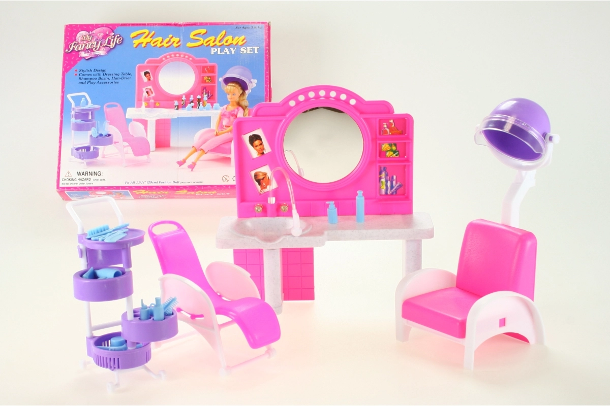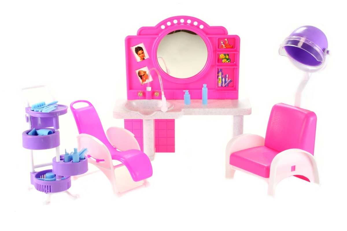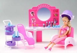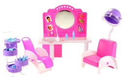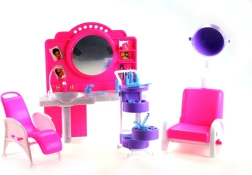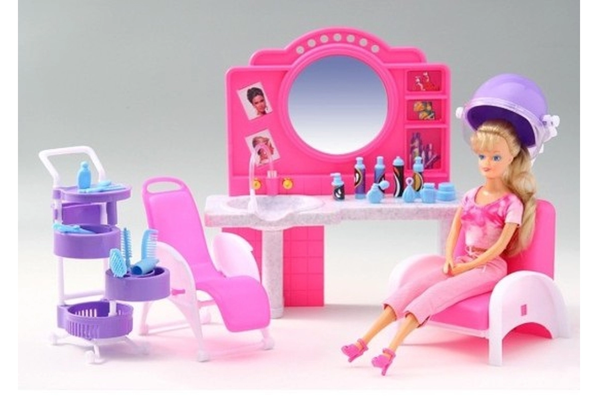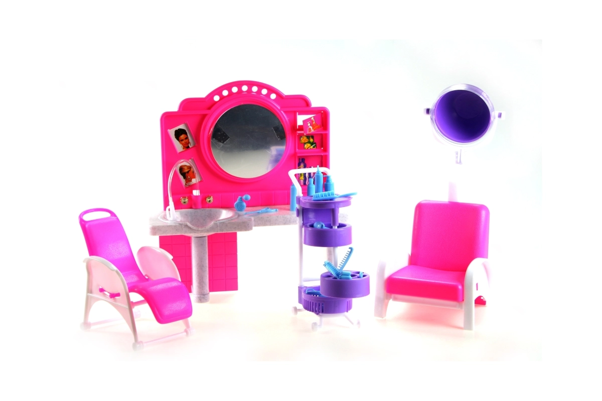 Stilingas žaidimų rinkinys Glorie kirpyklos salonas suteiks vaikams daug pramogų žaidžiant kirpyklą. Rinkinyje yra tualetinis staliukas su veidrodžiu ir praustuvu, patogios kirpyklos kėdės, vežimėlis su skyreliais ir gausybė plaukų priežiūros priedų, tokių kaip šukos, šepečiai ir buteliukai. Pagaminta iš patvaraus plastiko. Lėlė į komplektą neįeina. Tinka vaikams nuo 3 metų.