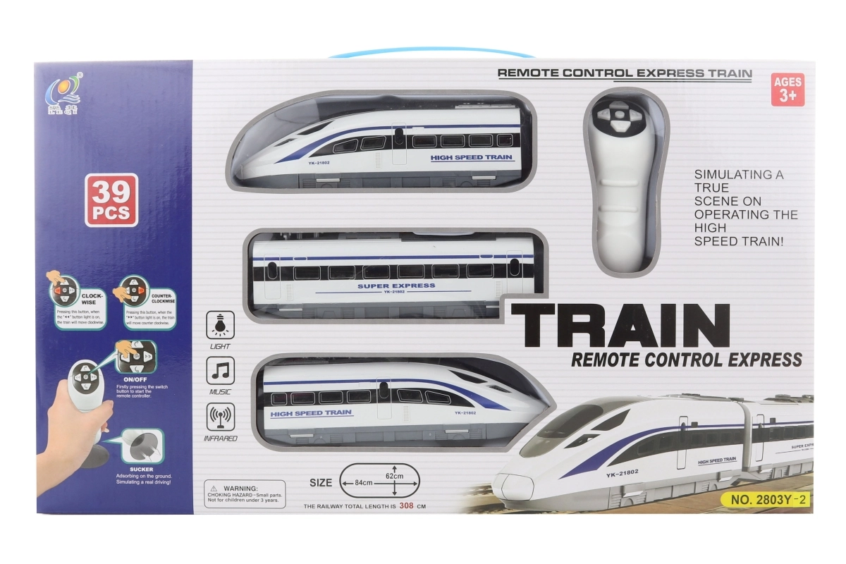 Nuotolinio valdymo traukinio trasa, ideali mažiems traukinių entuziastams, suteikia valandų pramogų su baterijomis varomu greittraukiu, nuotolinio valdymo pultu ir smagiais priedais.