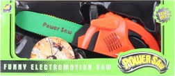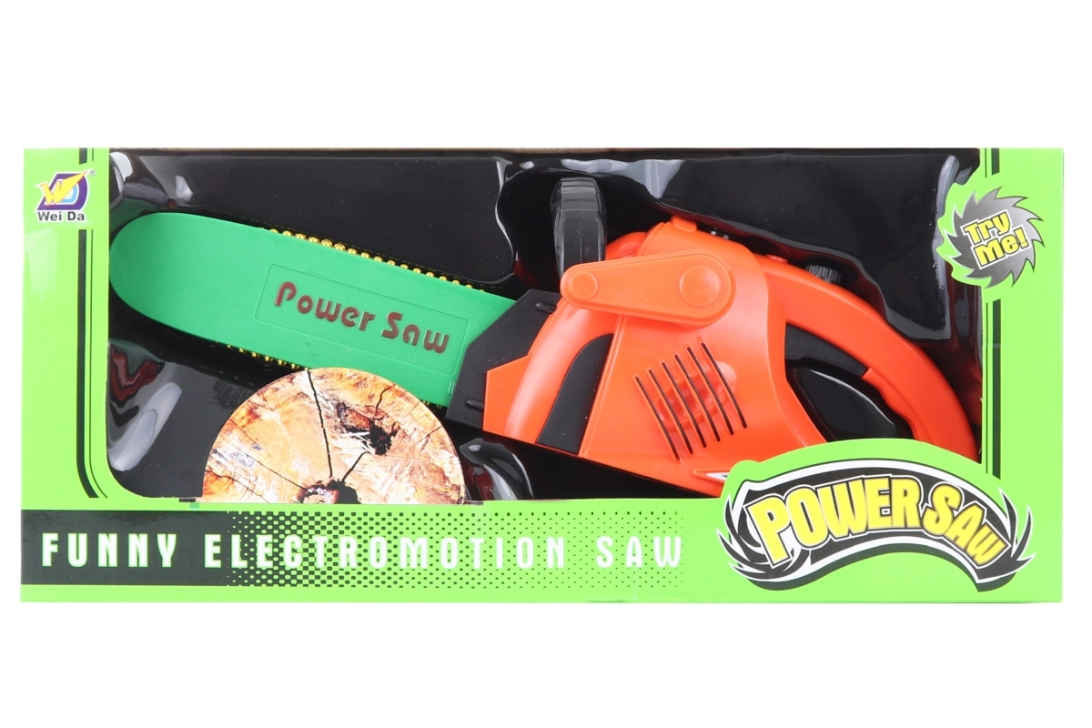 Vaikiškas plastikinis baterijomis maitinamas grandininis pjūklas pradžiugins mažuosius meistrus realistiškais efektais. Paspaudus mygtuką įsijungia grandinės sukimasis ir pjūklas šviečia, kas sustiprina pramogą ir autentiškumą. Dėl kompaktiškų matmenų jį patogu laikyti, jis tinka vaikams nuo 3 metų.