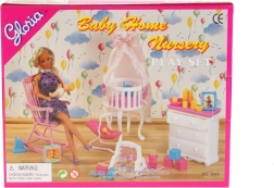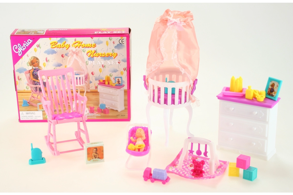 Pilnas kūdikio rinkinys iš Glorie prekės ženklo suteikia viską, ko reikia vaikų kambariui žaidžiant su lėlėmis. Jame rasite komodą su stalčiumi, lovelę su baldakimu, gultą, supamą krėslą, kūdikio priežiūros priedus ir patį kūdikį. Idealu vaikams nuo 3 metų, skatina fantaziją ir globojimo įgūdžius.