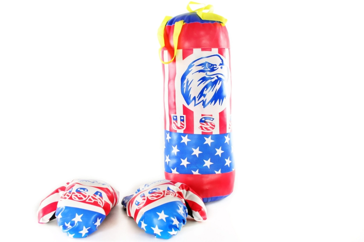 Vaikiškas bokso rinkinys – puikus pasirinkimas pirmiesiems treniruočių žingsniams ir energijai išlieti. Rinkinyje yra apie 42 cm ilgio bokso maišas su pakabinimo dirželiu ir dvi maždaug 22 cm bokso pirštinės. Lengvas, saugus ir paprastai pernešamas – tinka nuo 3 metų.