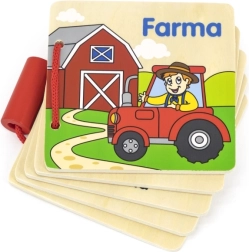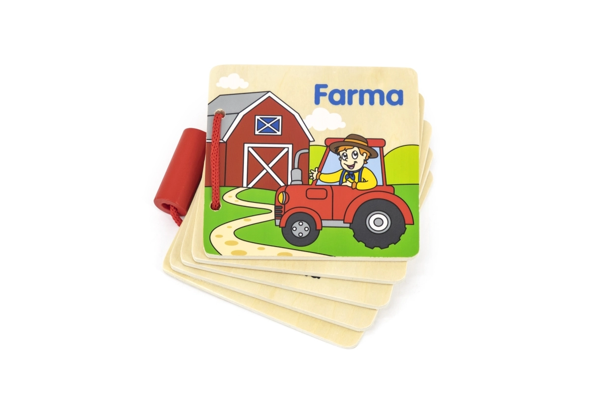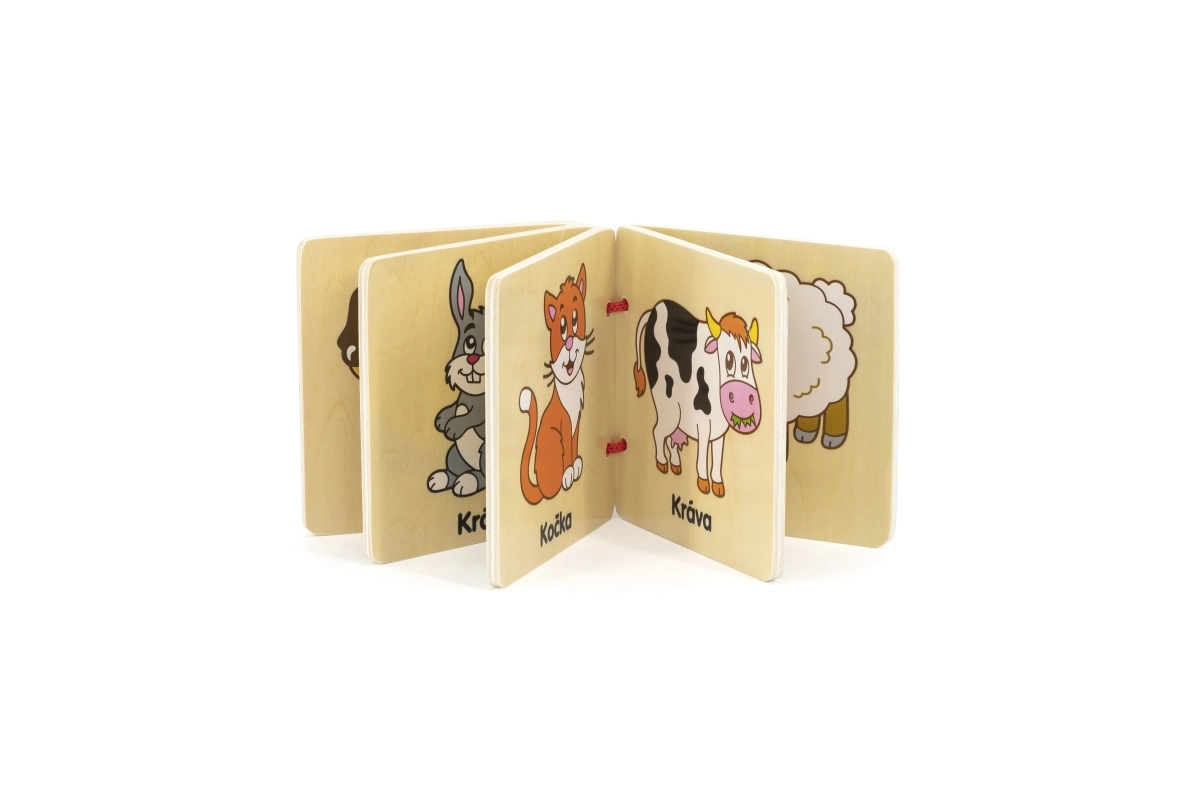 Ši medinė knygelė su ūkio motyvu – puiki priemonė vaikams pirmą kartą susipažinti su gyvūnėlių pasauliu. Patvarūs mediniai puslapiai su ryškiomis iliustracijomis ir čekų kalbos užrašais padeda lavinti smulkiąją motoriką, žodyną ir dėmesio sutelkimą.