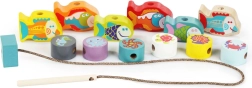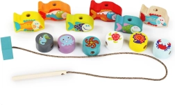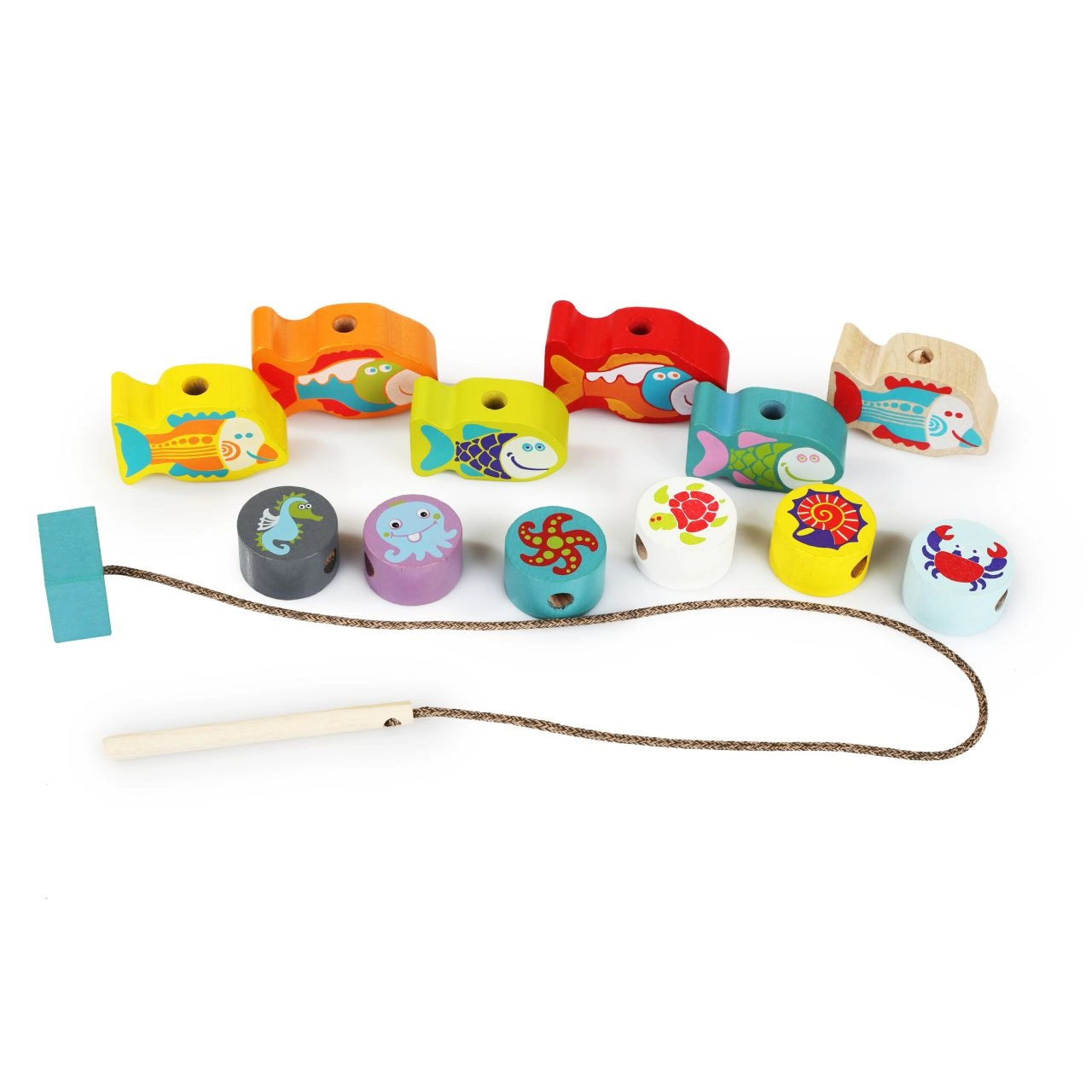 Vėrimo medinis rinkinys su žuvimis ir jūrų gyvūnais – puiki priemonė smulkiajai motorikai ir kūrybiškumui lavinti, pagaminta iš ekologiškai užaugintos medienos.